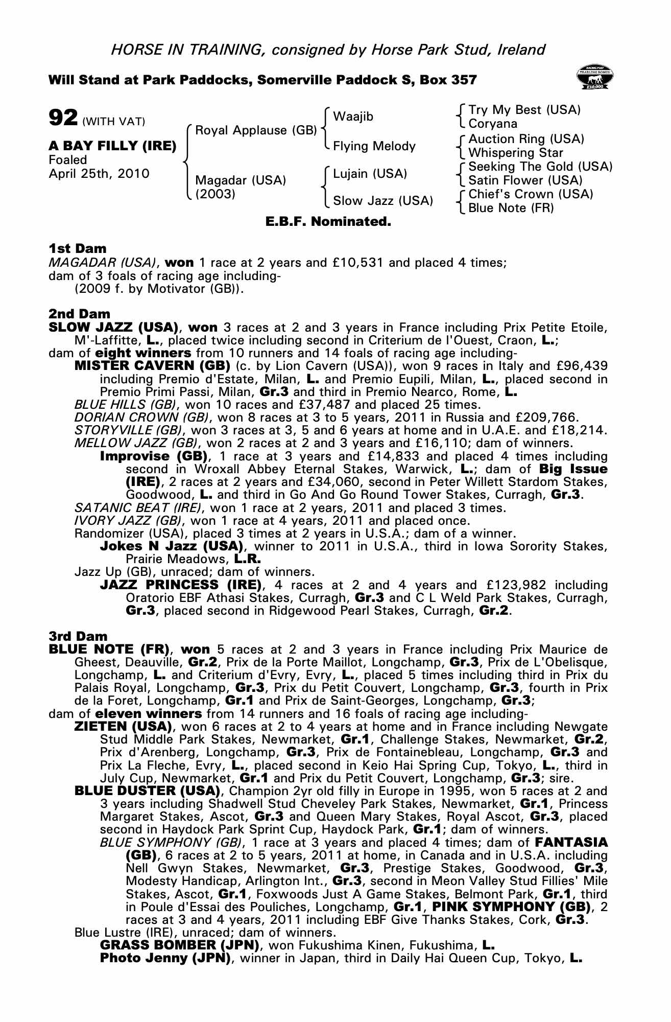 September Yearling Sale 2011 lot 211 F. 2010, Kilnamoragh Stud=>John Cullinan €10,000