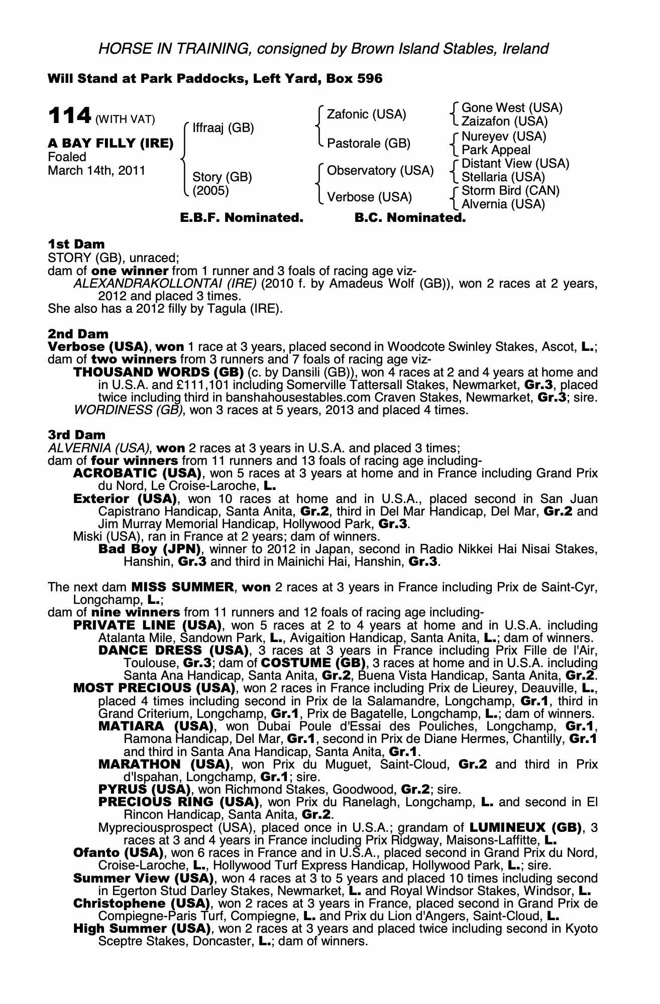 September Yearling Sale 2013 lot 178 F. by Tagula (IRE) 2012, Corrin Stud=>Robin O'Ryan €7,000
