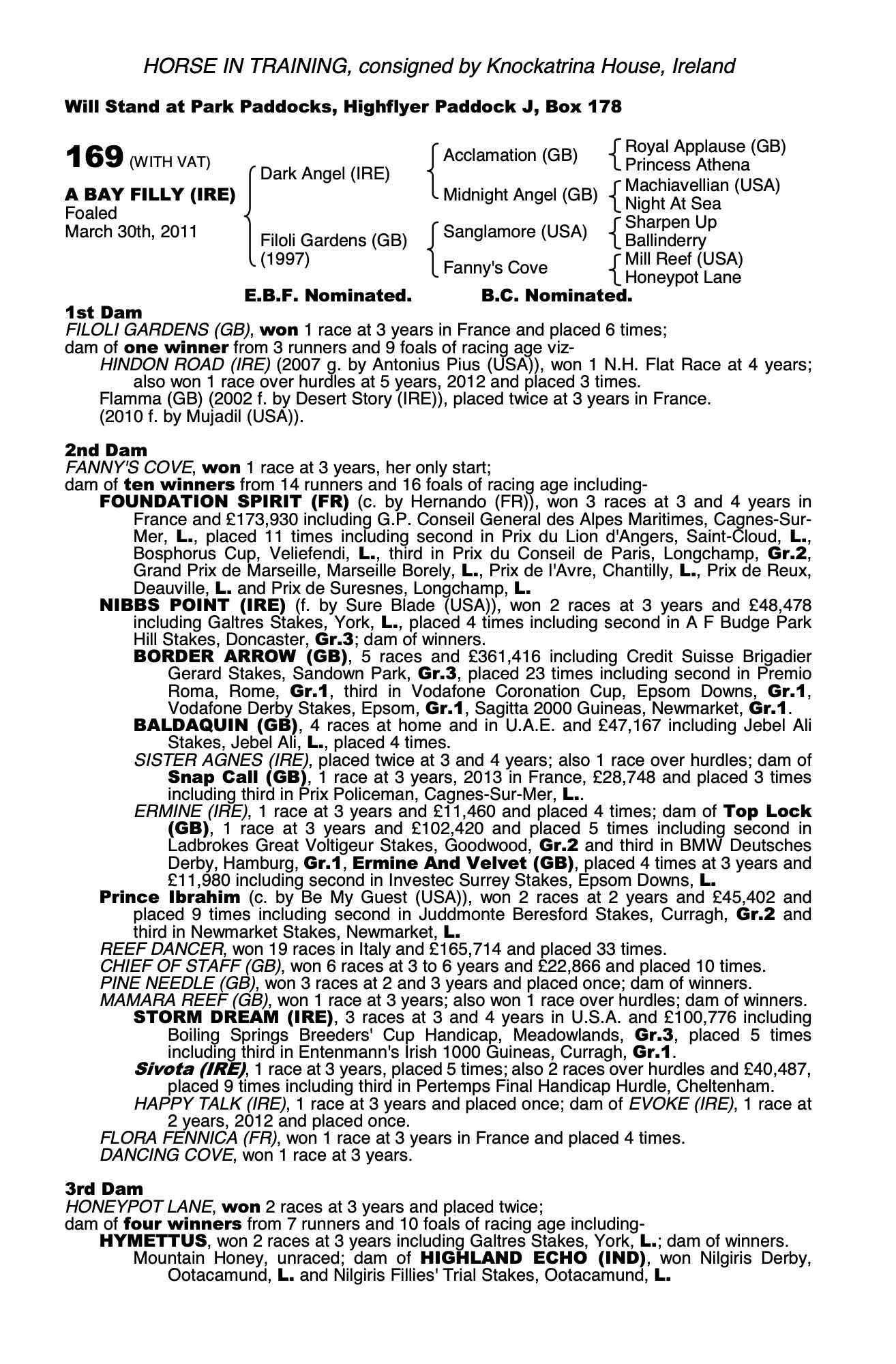 September Yearling Sale 2011 lot 87 F. by Mujadil (USA) 2010, Oghill House Stud=>Vendor €4,000