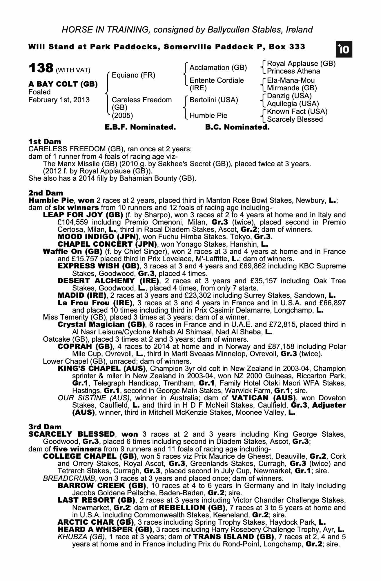 July Sale 2014 lot 514 F. by Royal Applause (GB) 2012, Somerville Lodge Ltd. (W. Haggas)=>Paul Nataf 800 gns