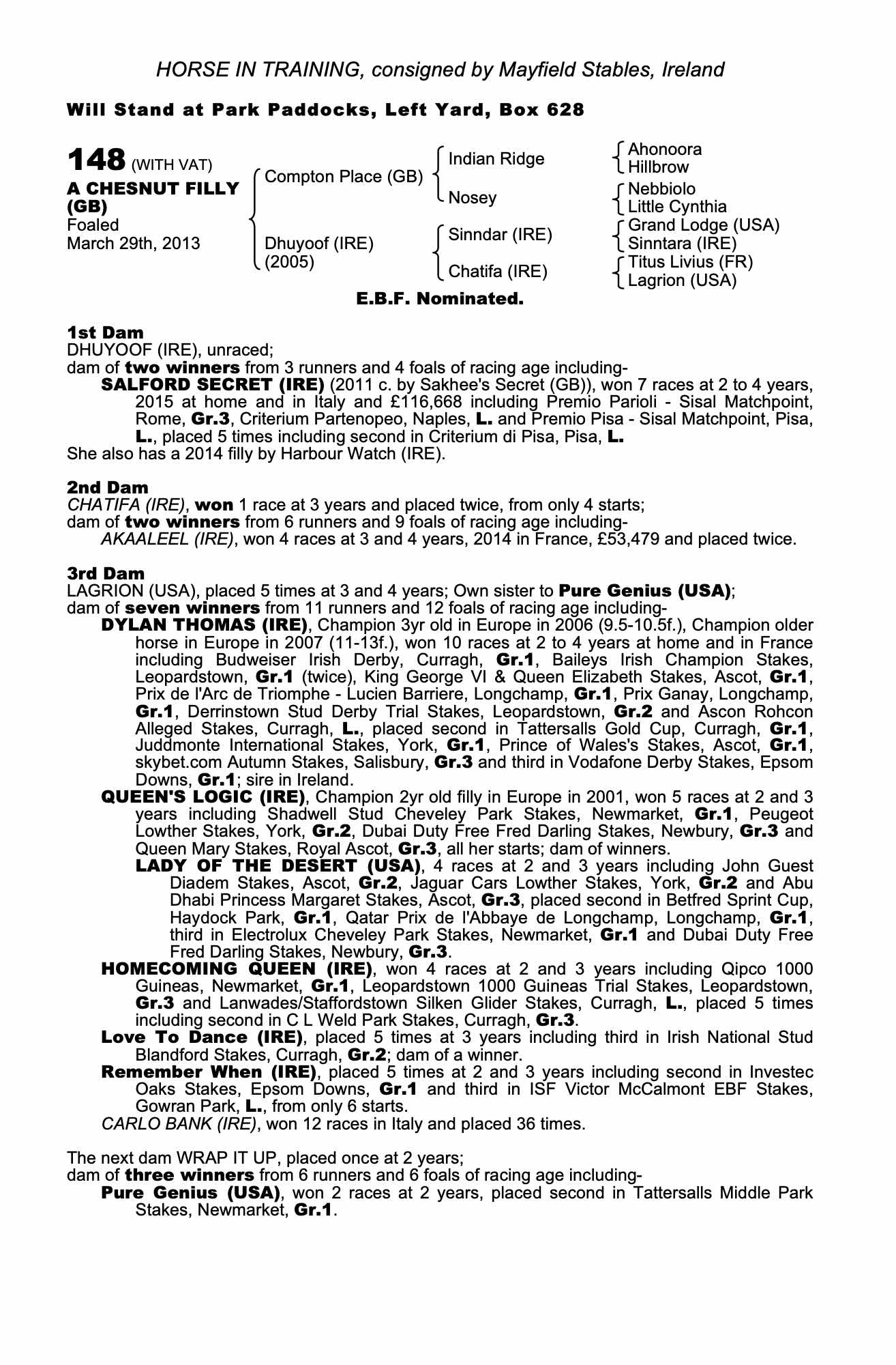 Autumn Horses in Training Sale 2013 lot 41 Salford Secret (IRE) (C. by Sakhee's Secret (GB)), Prestige Place (M. Botti)=>Blandford Bloodstock 28,000 gns