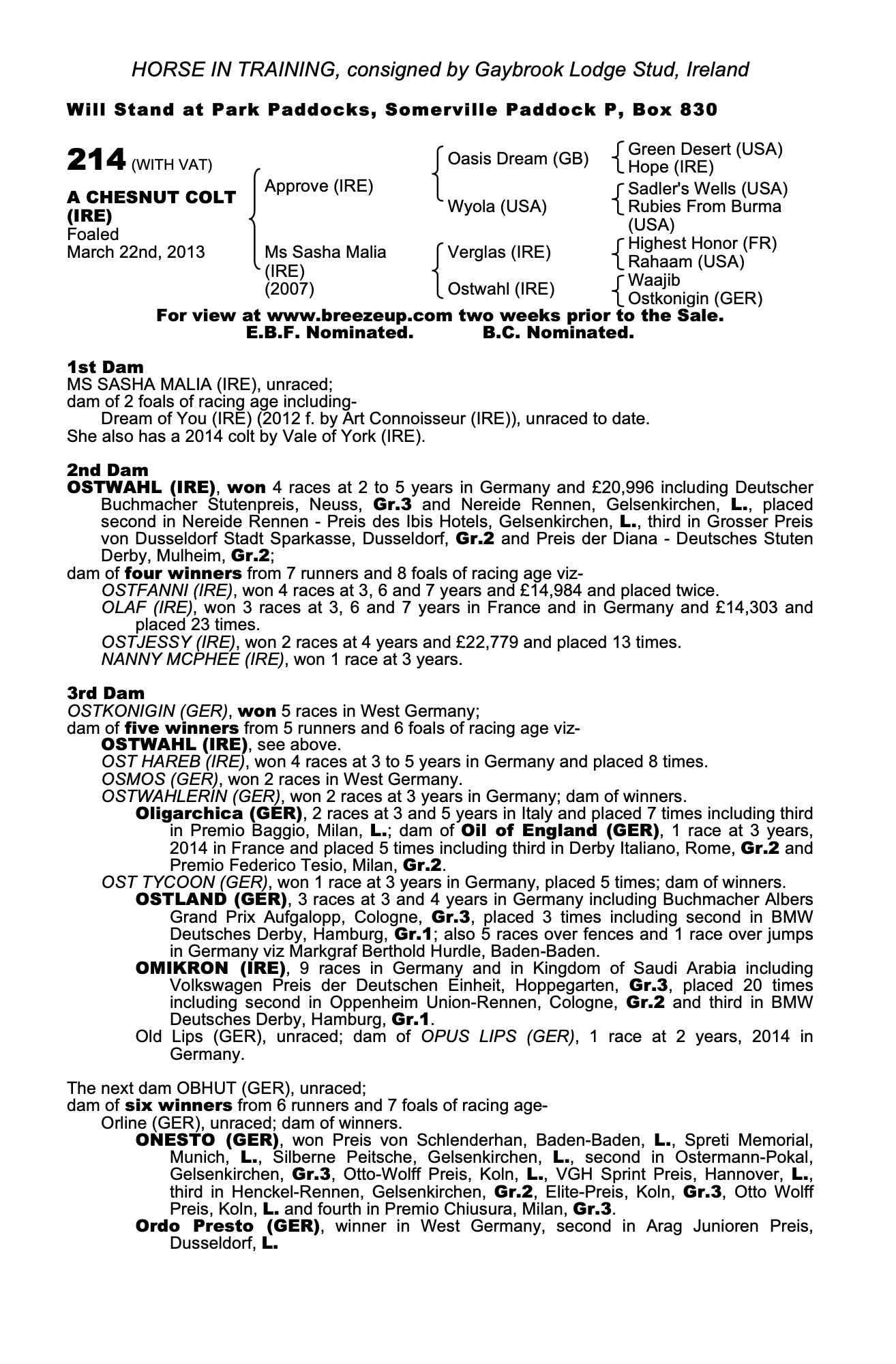 December Foal Sale 2014 lot 1258 C. by Vale of York (IRE) 2014, Misty Lodge Stud, Ireland=>Lot Not Sold 4,500 gns