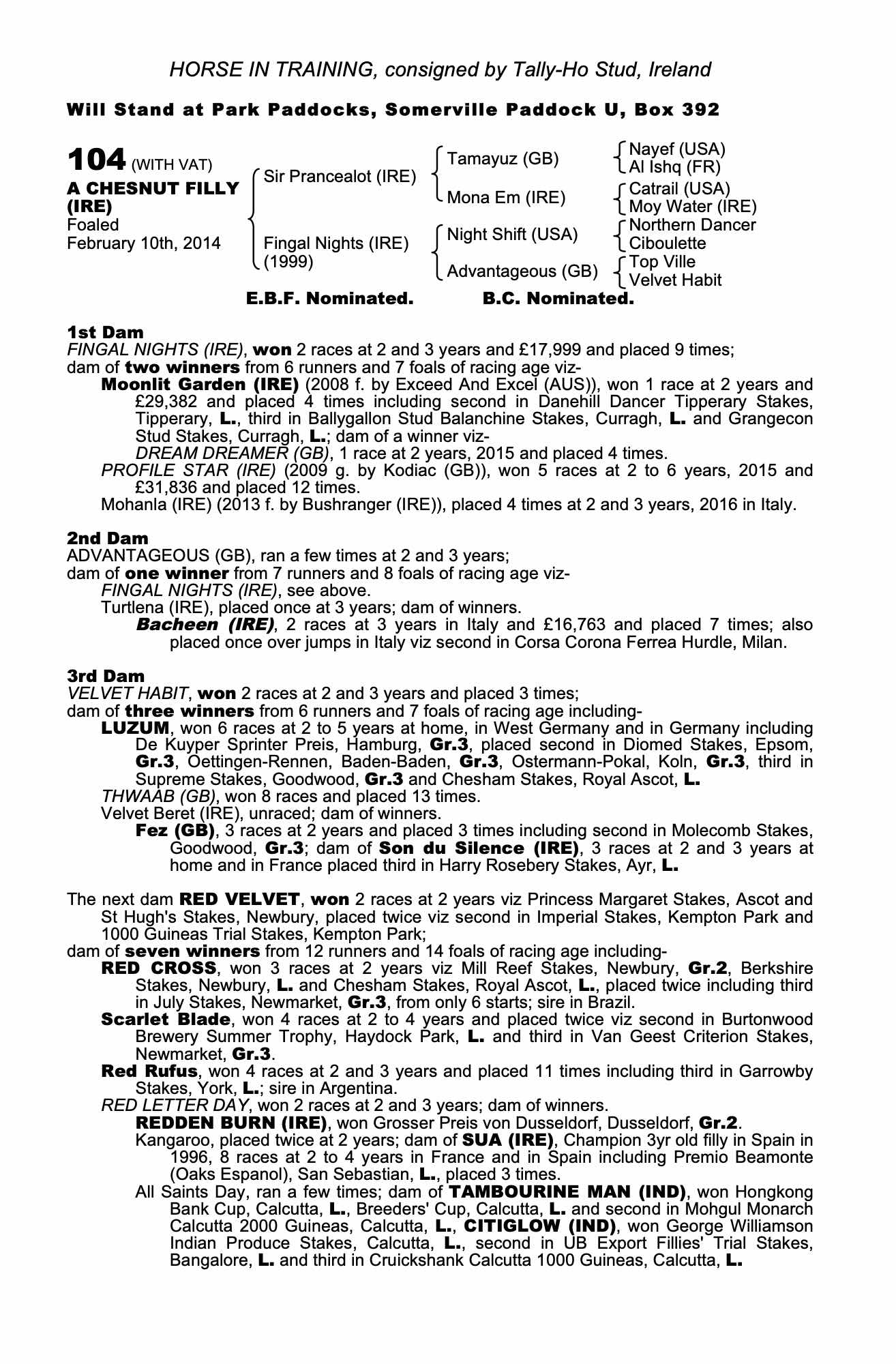 Consignor: Tally-Ho Stud, Ireland