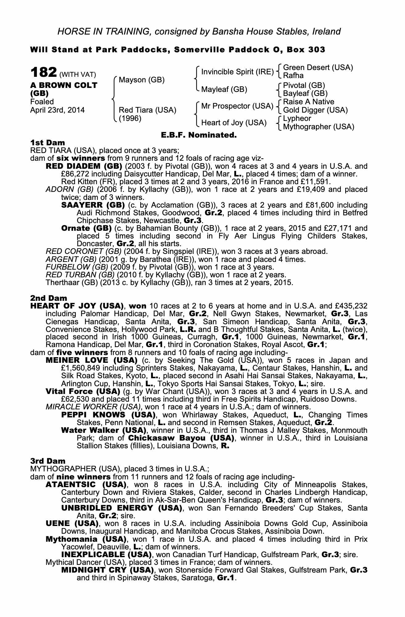 October Yearling Sale 2002 lot 89 C. by Barathea (IRE) 2001, Cheveley Park Stud=>Declan Carroll 30,000 gns