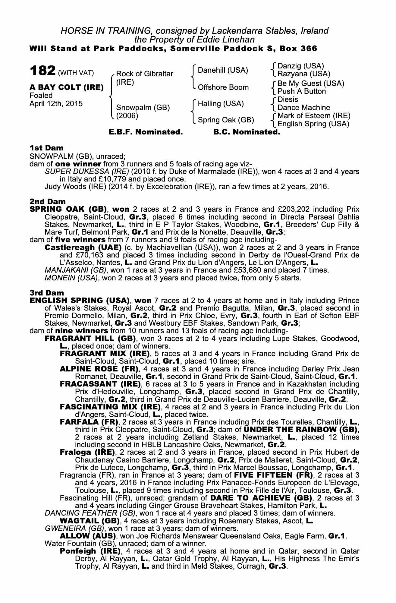 Guineas Breeze Up Sale 2016 lot 203 F. by Excelebration (IRE) 2014, Ballycullen Stables, Ireland=>Vendor 22,000 gns