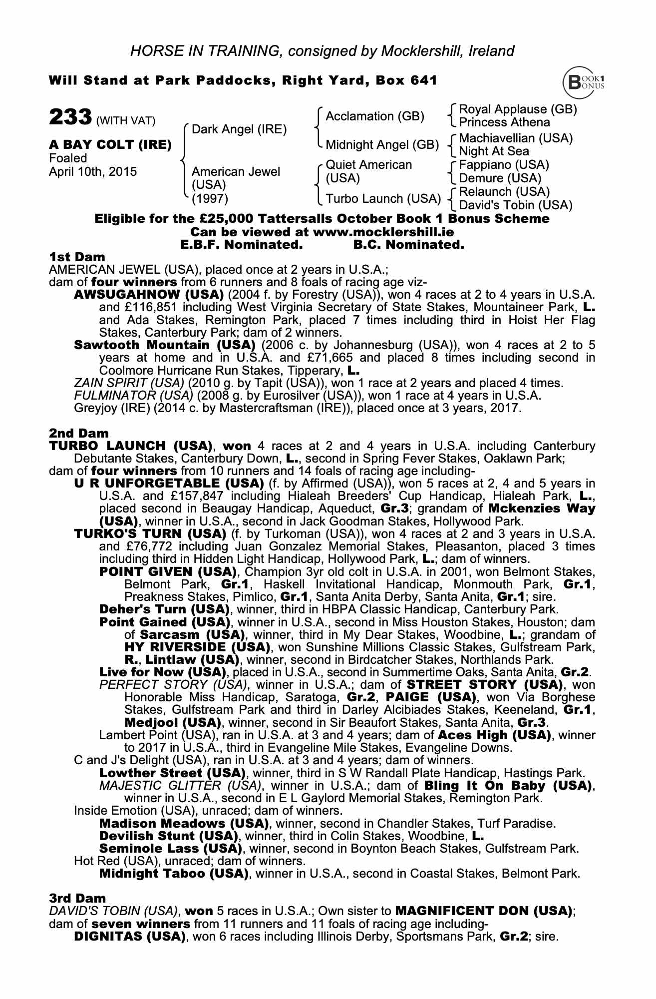 Consignor: Mocklershill, Ireland