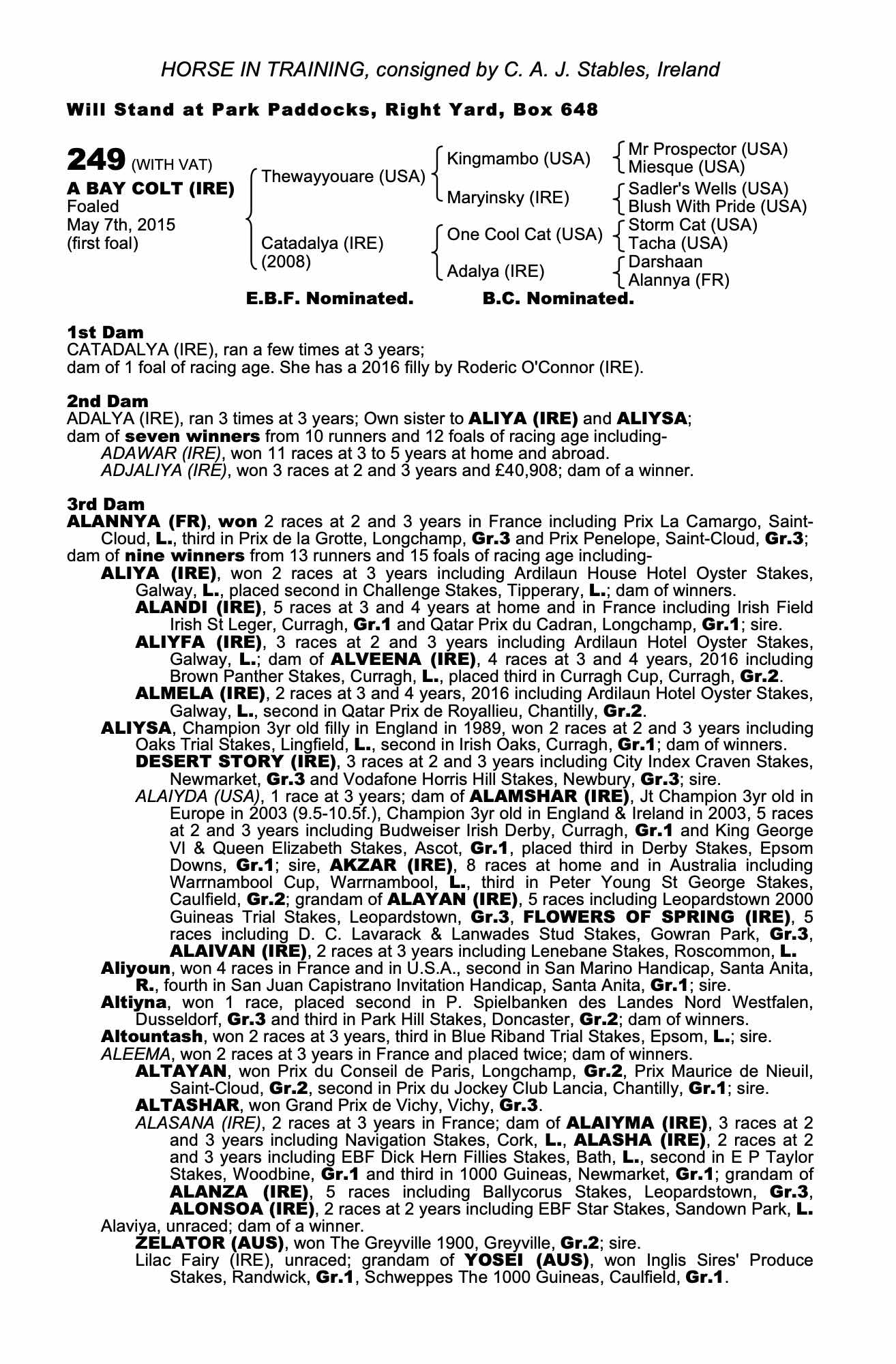 Consignor: C. A. J. Stables, Ireland