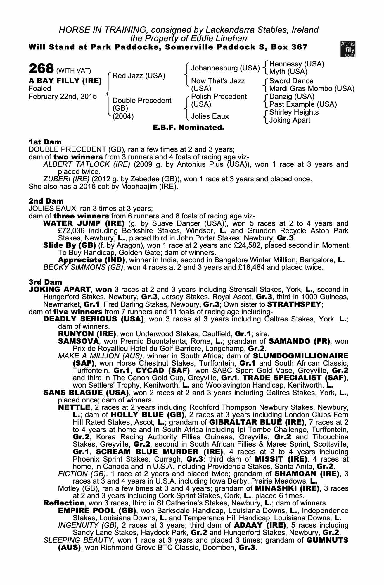 Consignor: Lackendarra Stables, Ireland