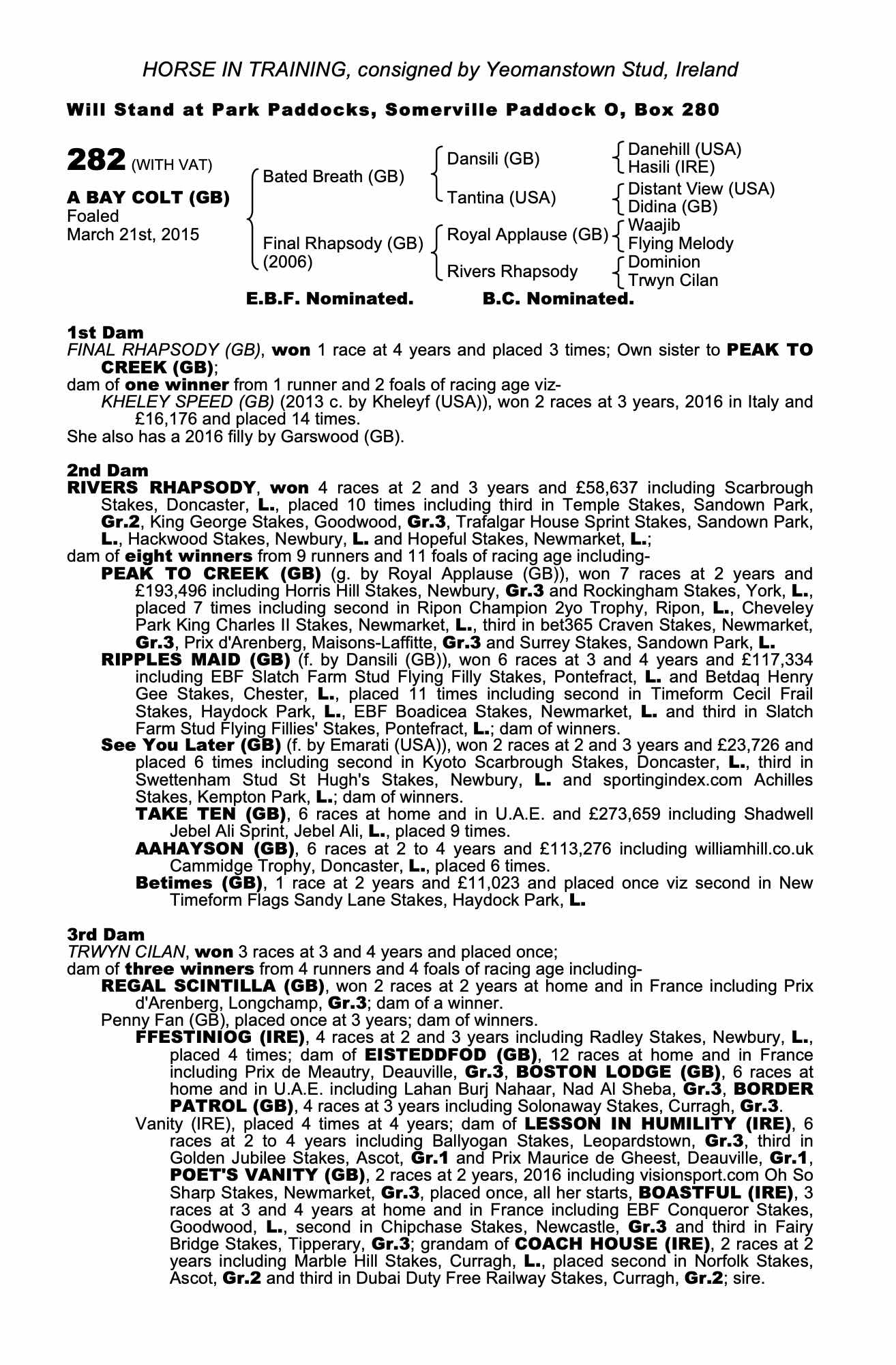 Consignor: Yeomanstown Stud, Ireland