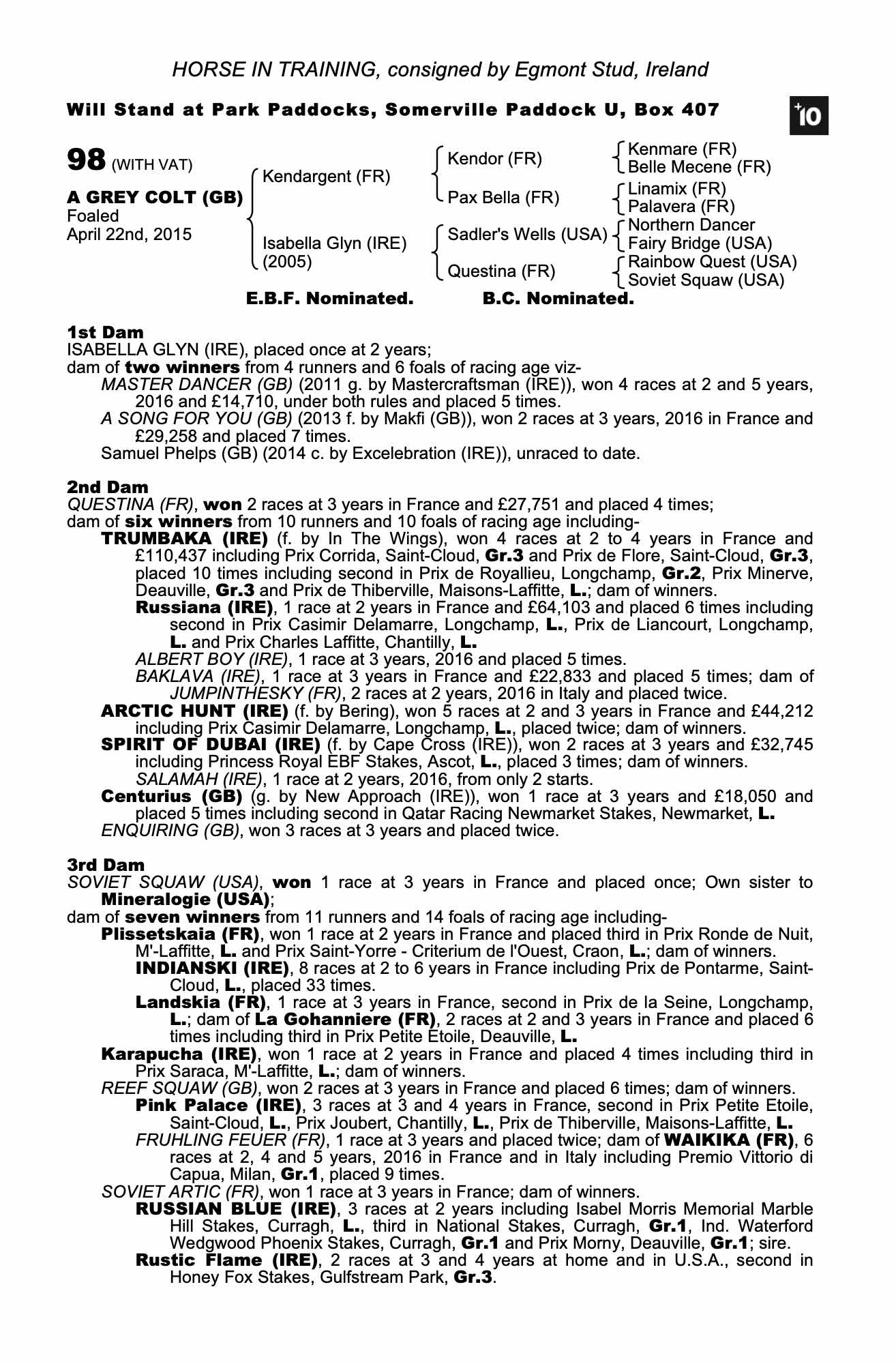 Consignor: Egmont Stud, Ireland