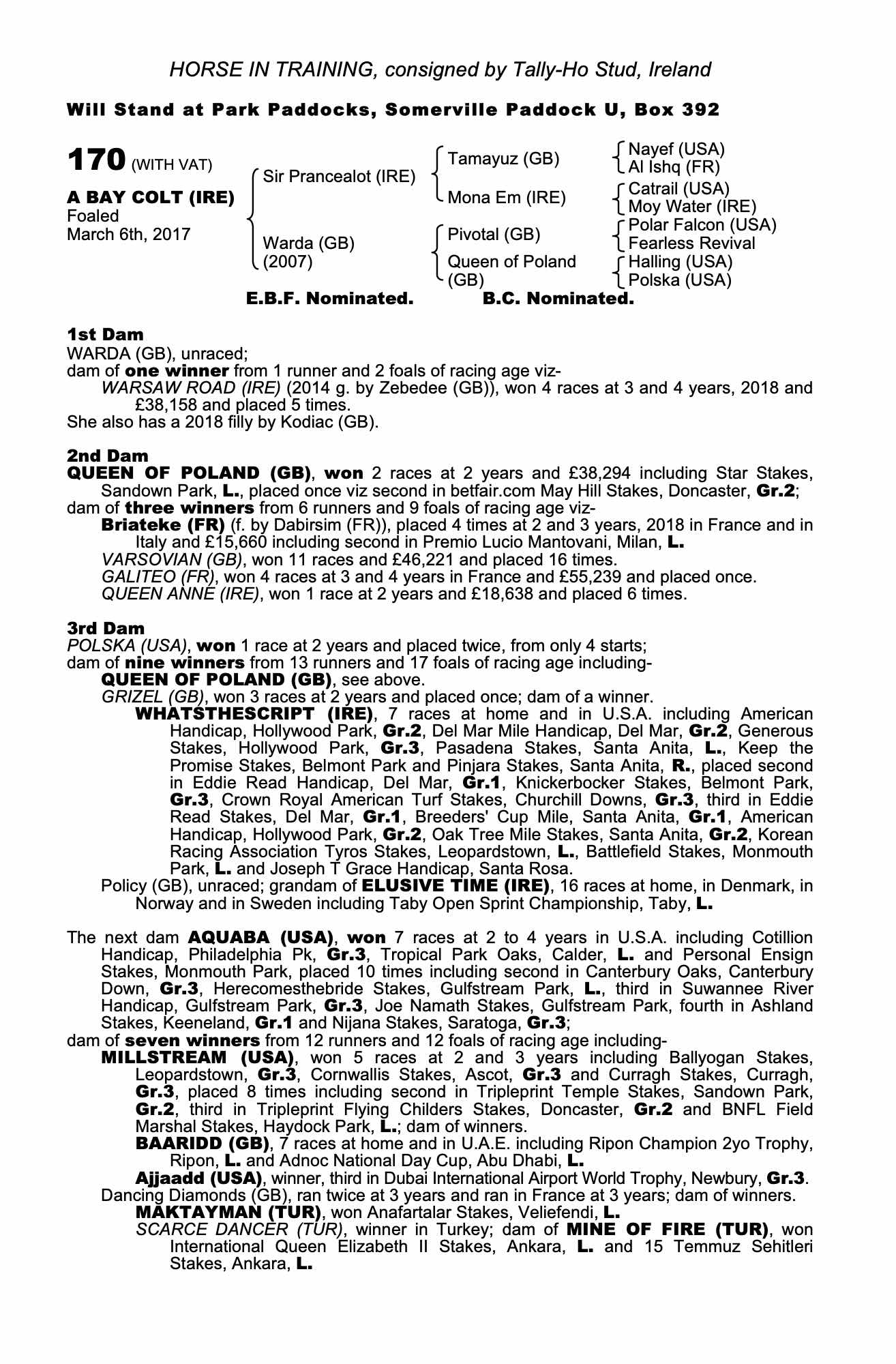 February Sale 2020 lot 330 Warsaw Road (IRE) (G. by Zebedee (GB)), Jamie Railton (Agent)=>Naser M Turki Alkhaldi 15,000 gns