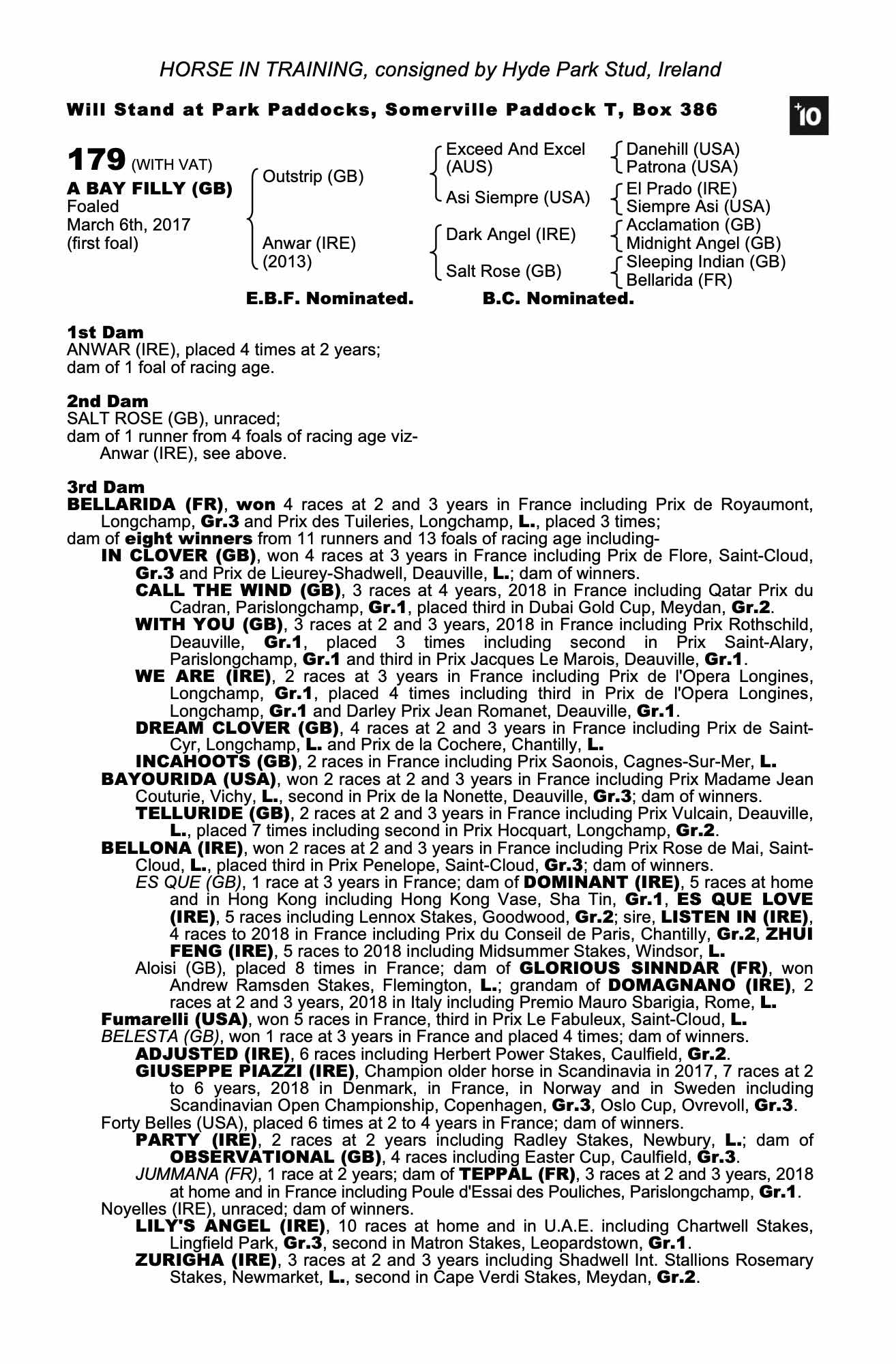 Consignor: Hyde Park Stud, Ireland