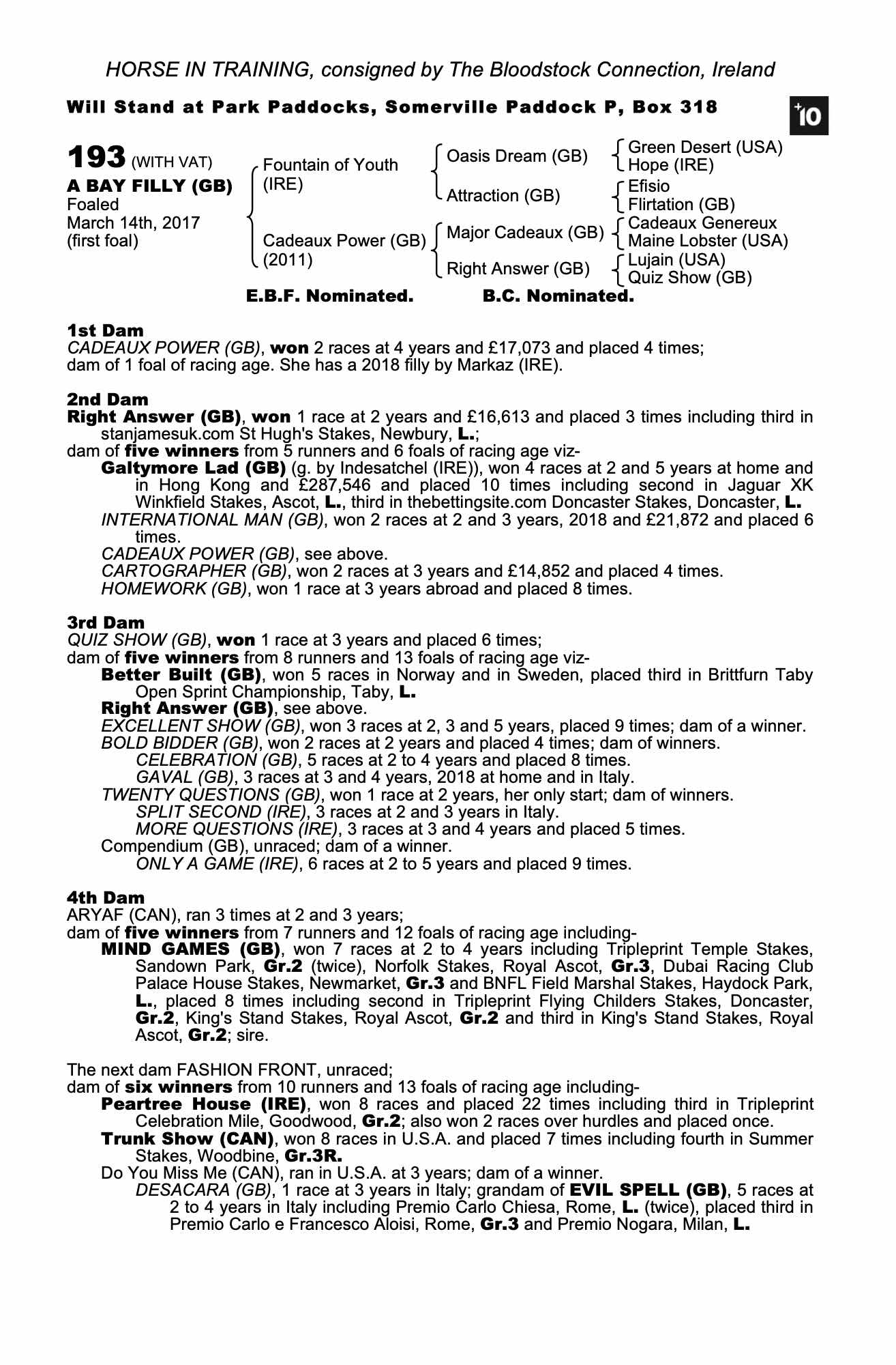 Consignor: The Bloodstock Connection, Ireland
