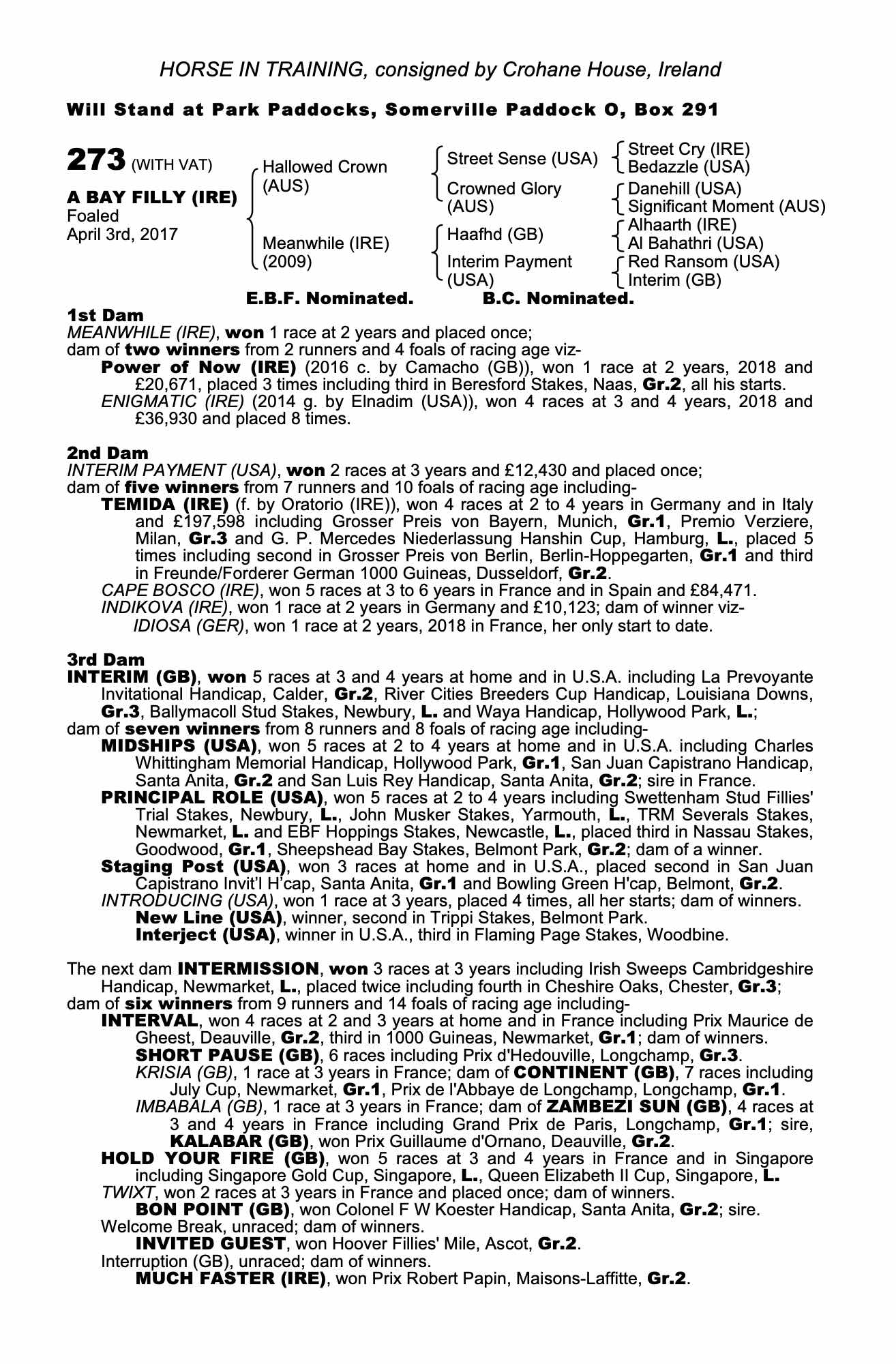 Hallowed Crown (AUS) / Meanwhile (IRE) B.F. (IRE)