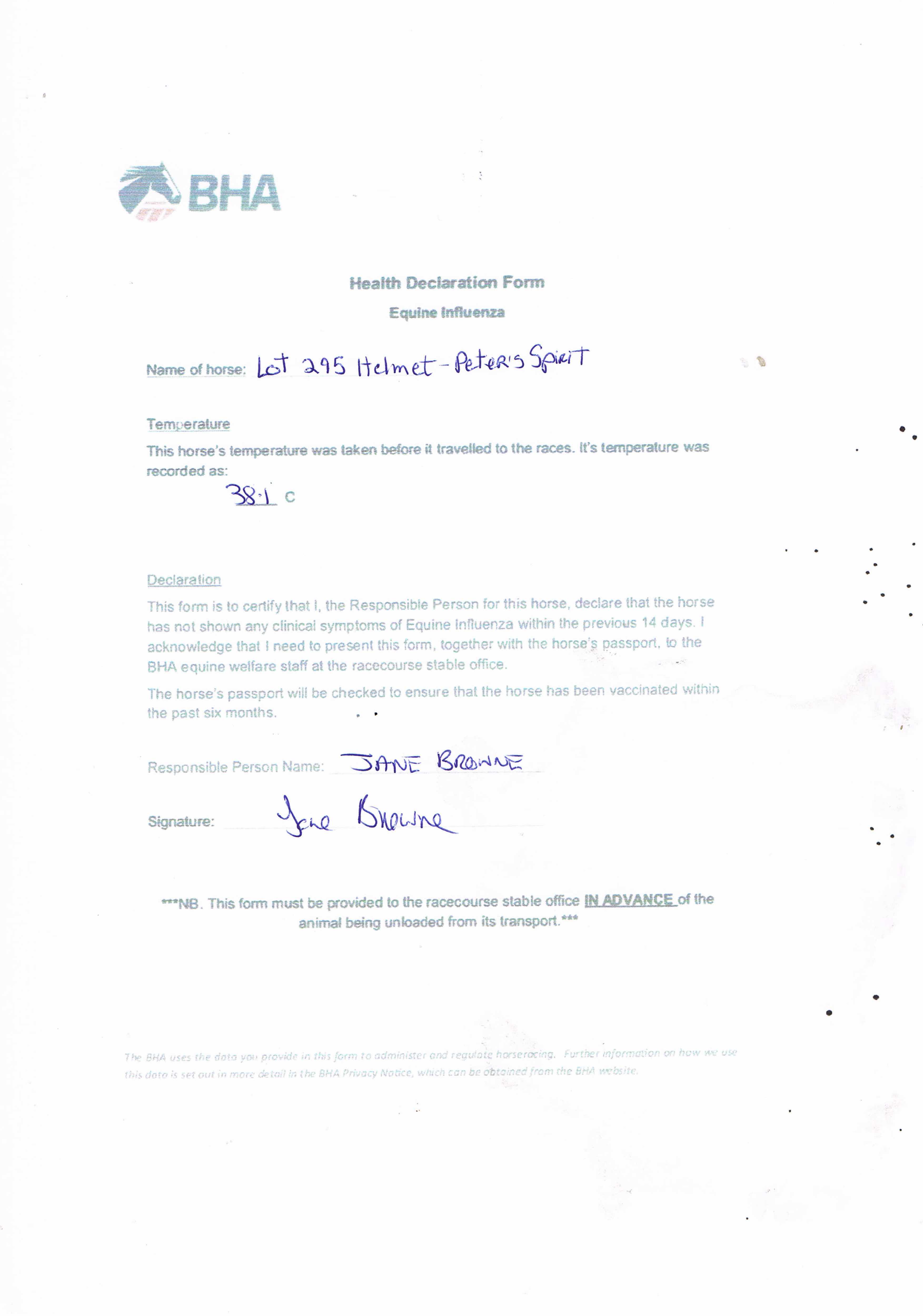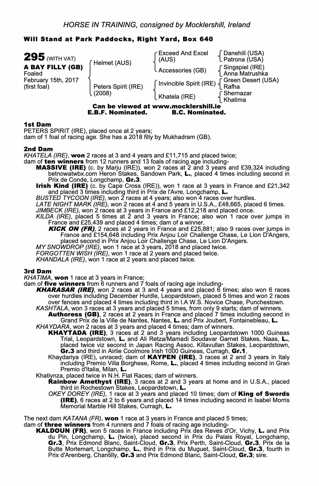 Helmet (AUS) / Peters Spirit (IRE) B.F. (GB)