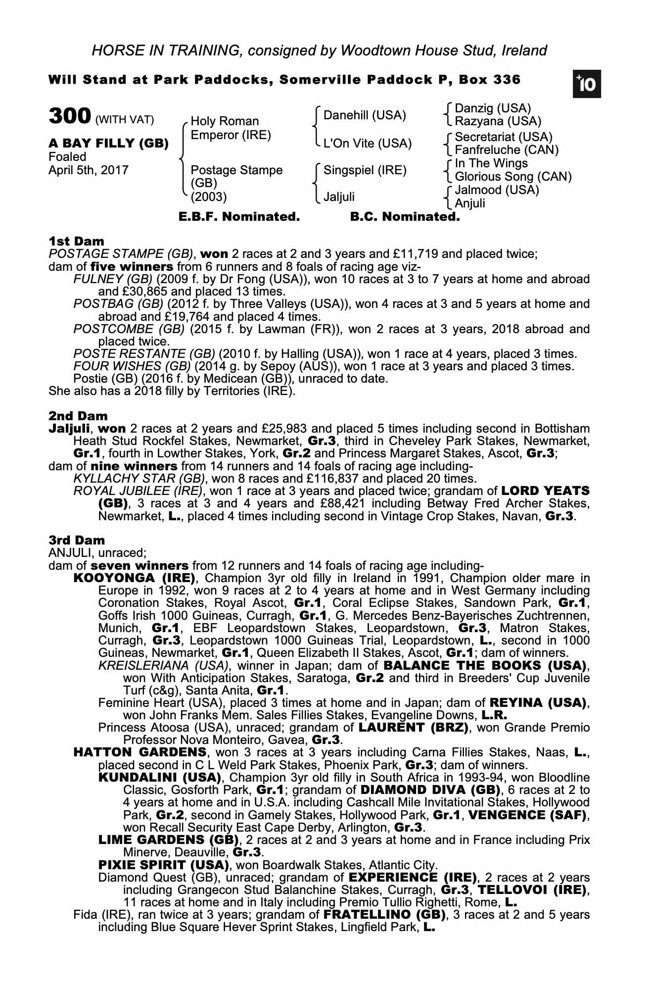 Autumn Horses in Training Sale lot 1033 Postbag (GB) (F. by Three Valleys (USA)), Kingstone Warren Stables (H. Candy)=>Stable Ippotrust 7,000 gns