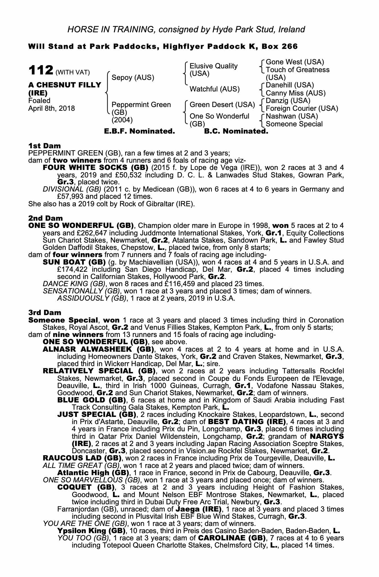 December Mare Sale 2018 lot 1950 Four White Socks (GB) (F. by Lope de Vega (IRE)), Bedford House Stables (L. Cumani)=>Stephen Hillen Bloodstock 50,000 gns