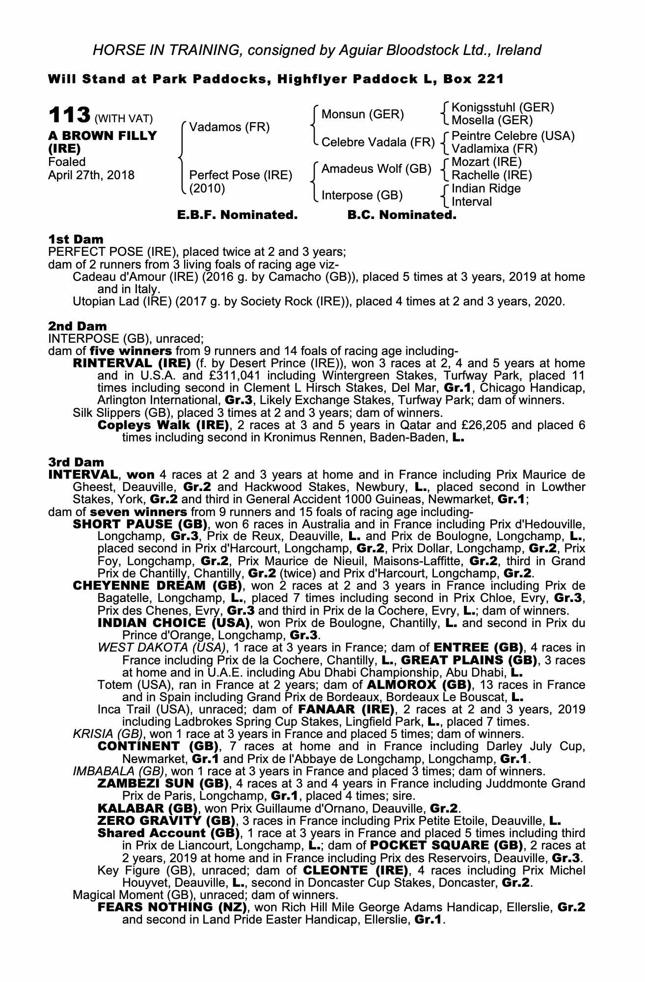 Consignor: Aguiar Bloodstock Ltd., Ireland