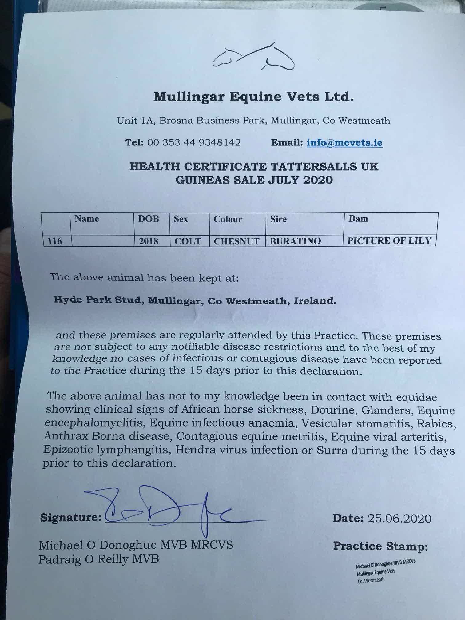 Consignor: Hyde Park Stud, Ireland