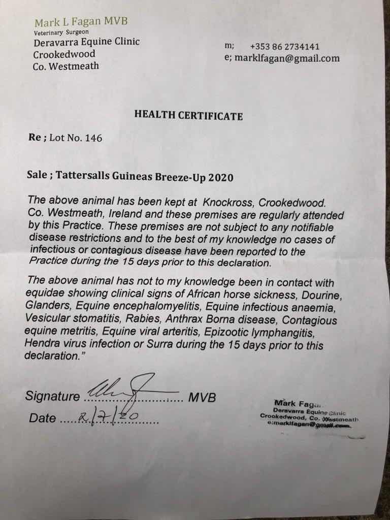 Consignor: Aguiar Bloodstock Ltd., Ireland