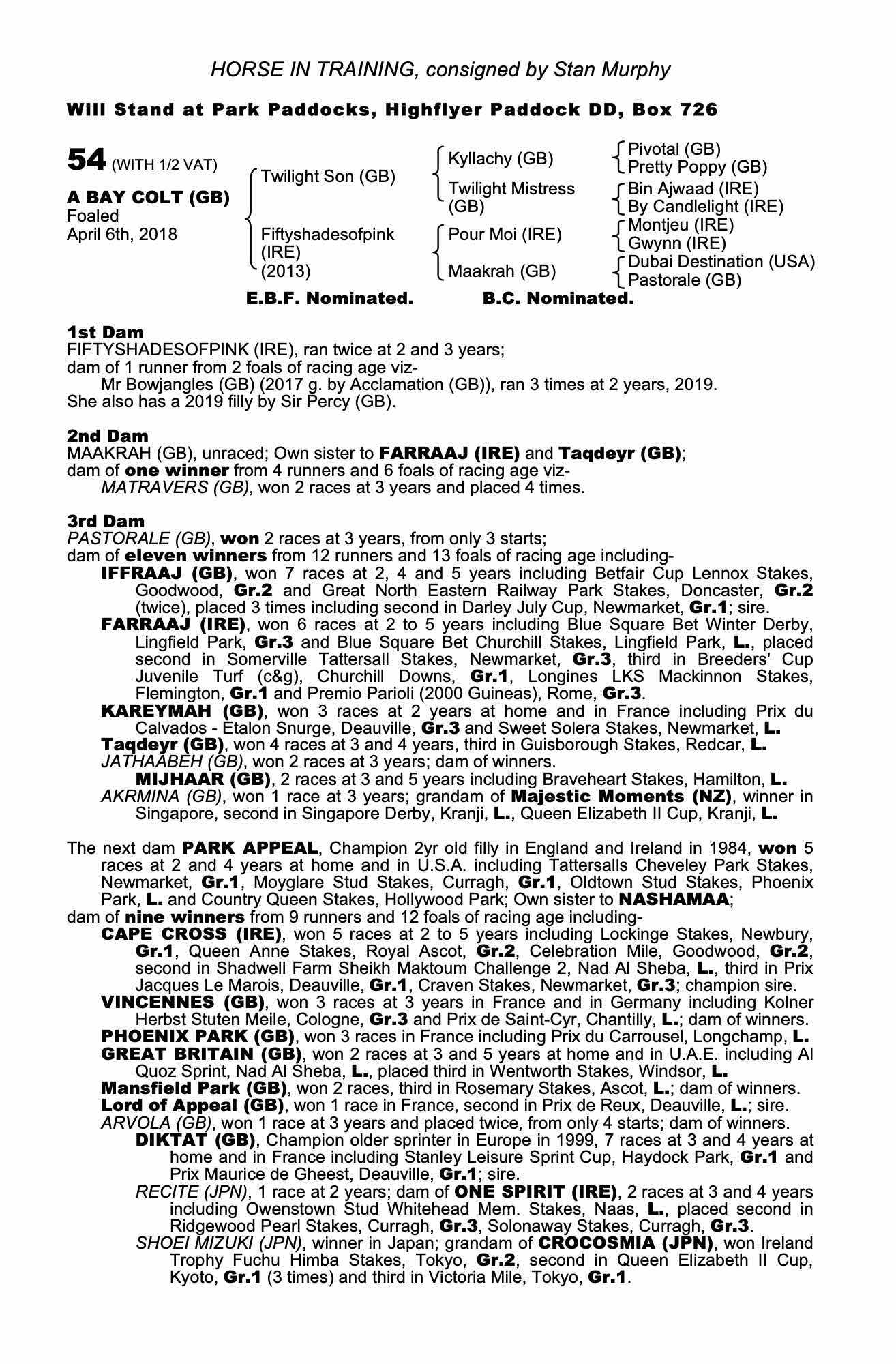 October Yearling Sale, Book 3 2019 lot 1507, Clara Stud, Ireland=>Vendor 8,000 gns