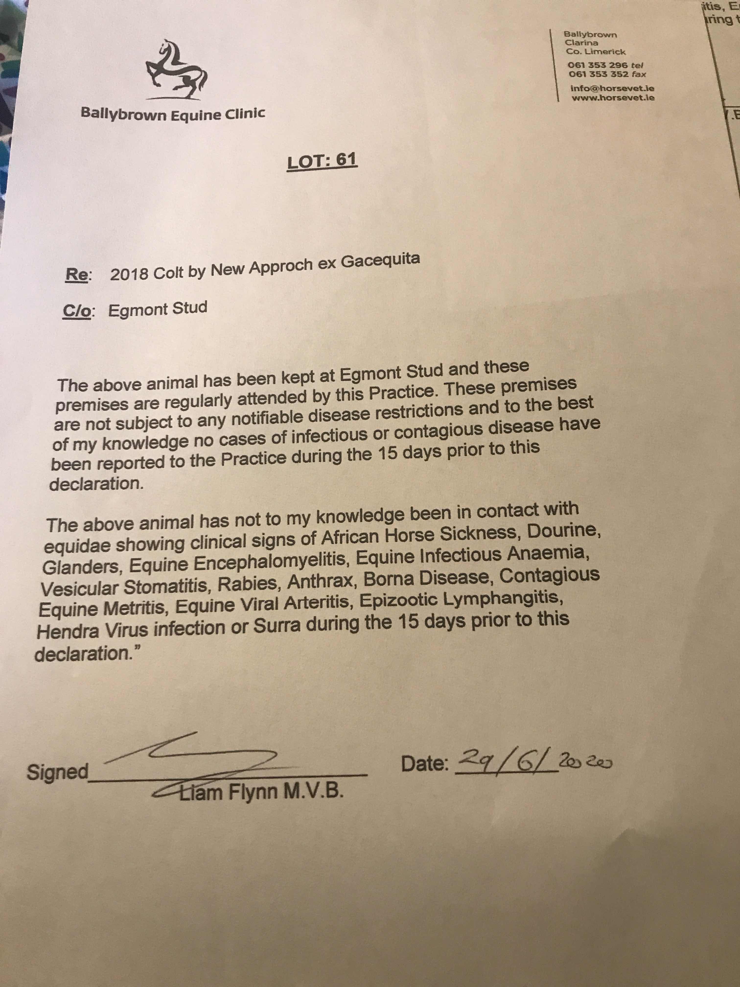 Consignor: Egmont Stud, Ireland