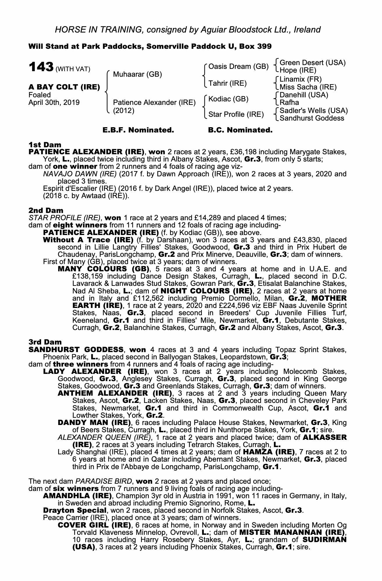 Consignor: Aguiar Bloodstock Ltd., Ireland