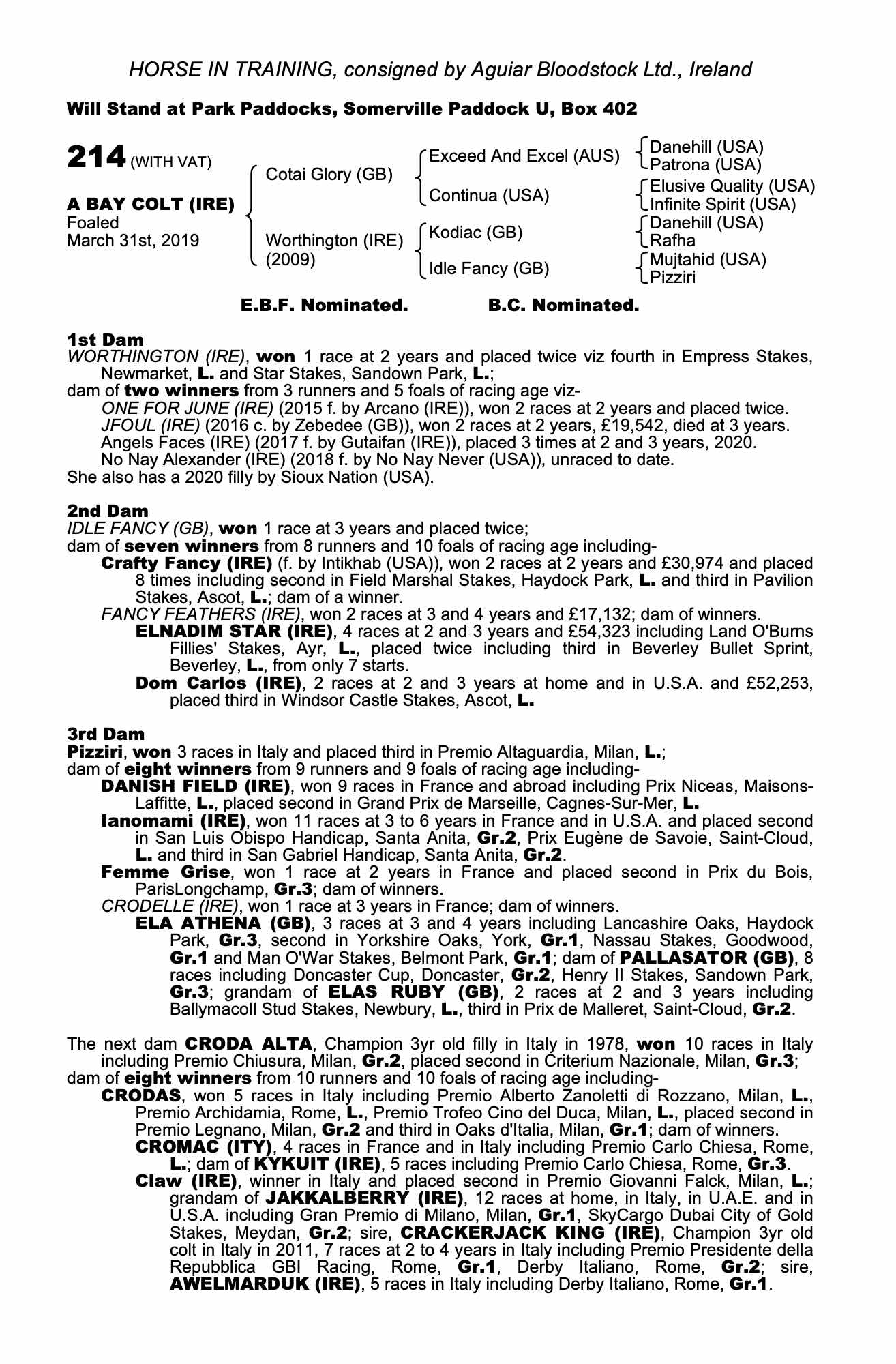 Consignor: Aguiar Bloodstock Ltd., Ireland
