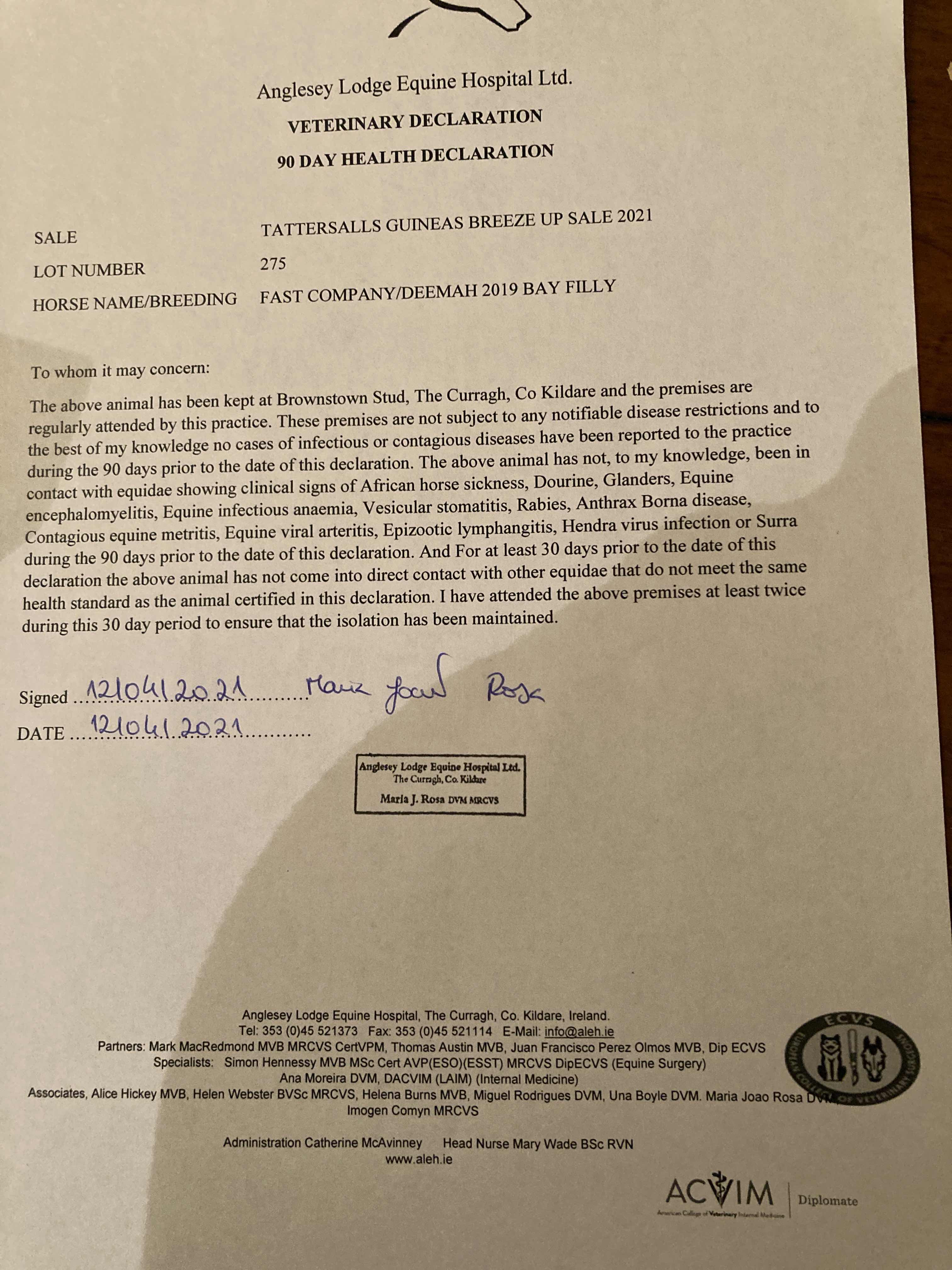 Consignor: A. & N. Bloodstock, Ireland