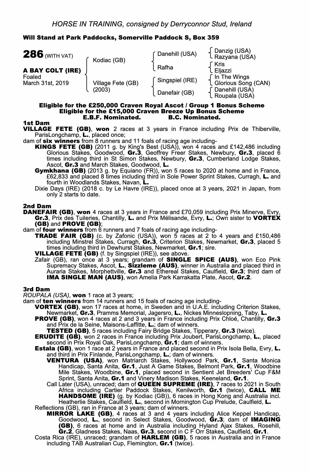 Consignor: Derryconnor Stud, Ireland