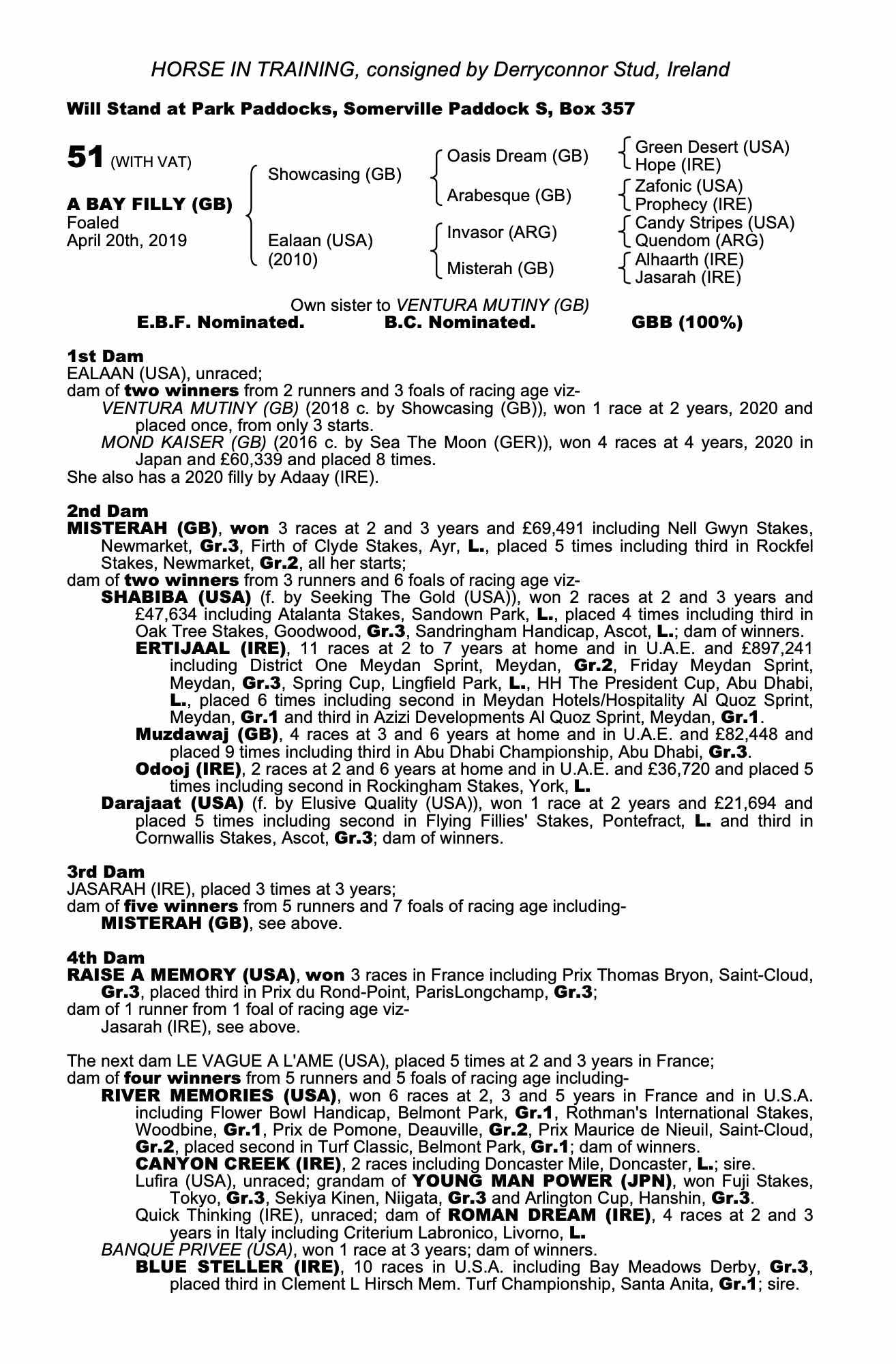 Consignor: Derryconnor Stud, Ireland