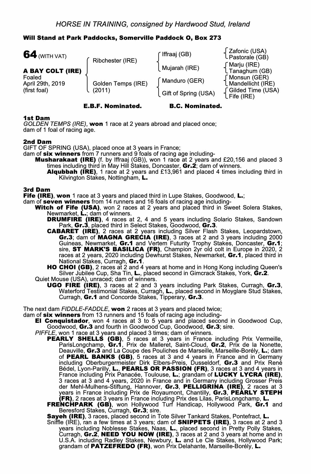 Consignor: Hardwood Stud, Ireland