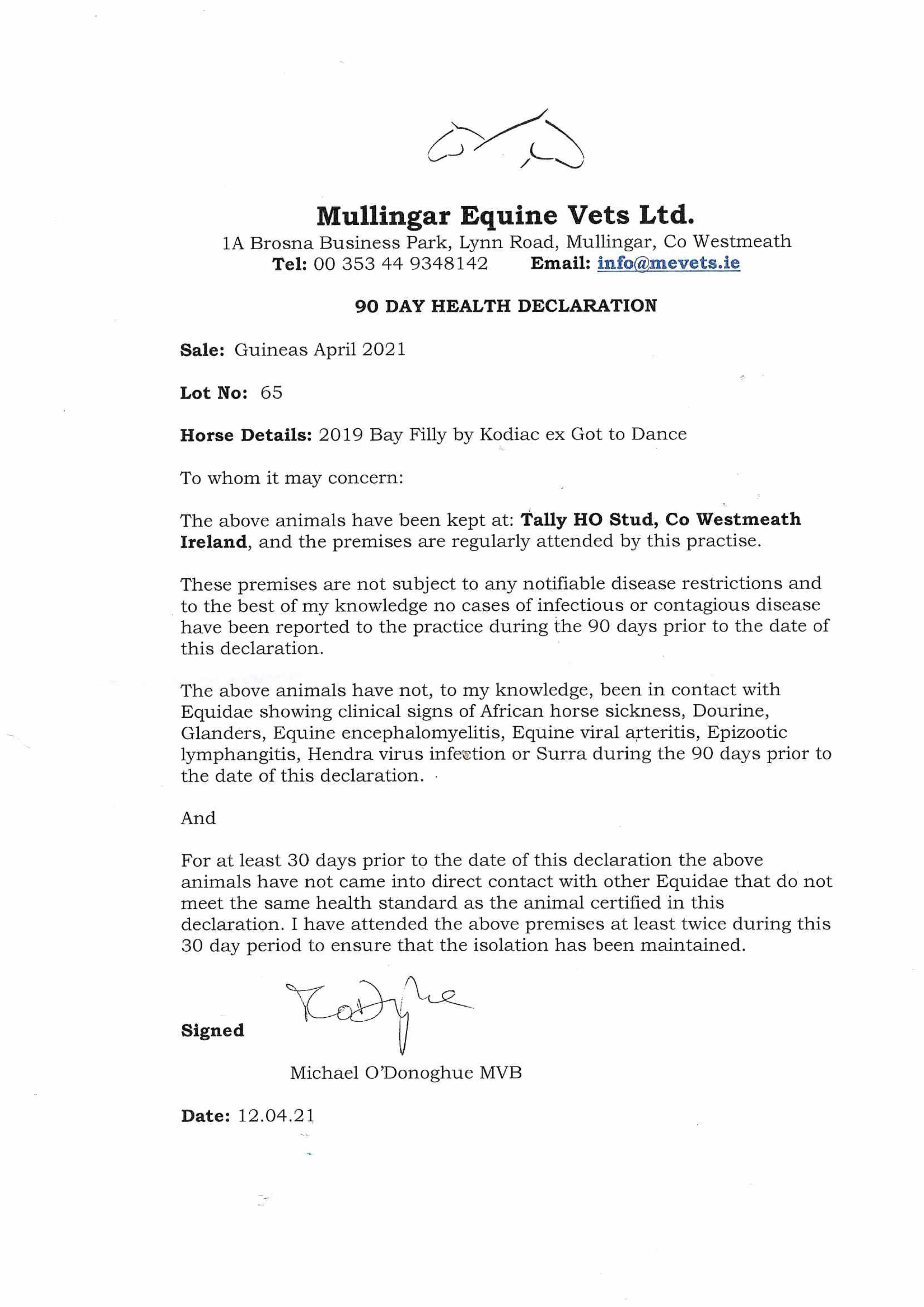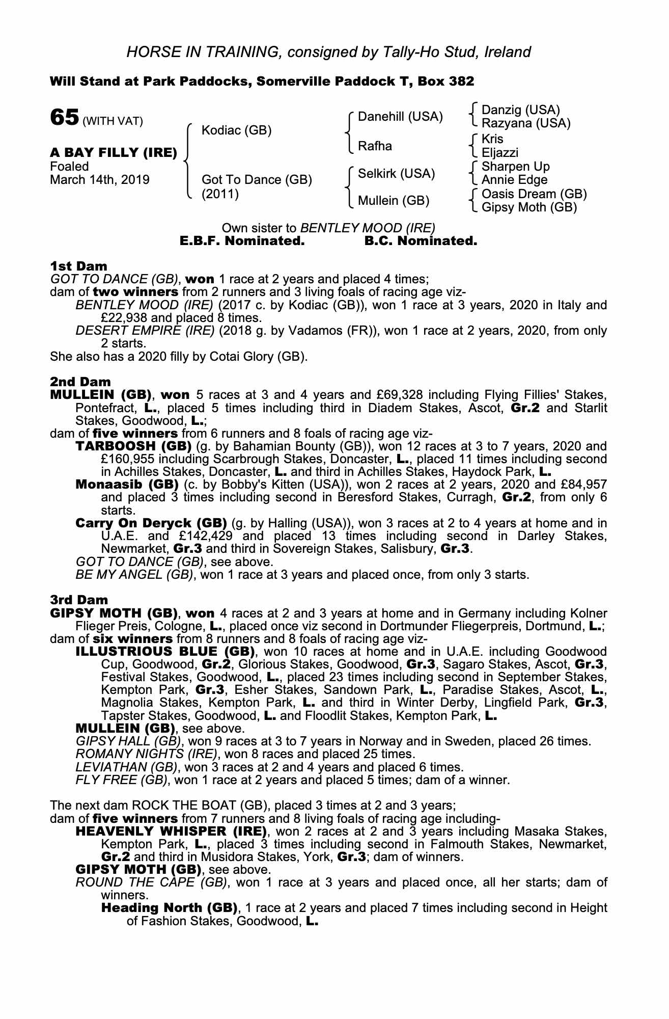 Somerville Yearling Sale 2021 lot 280 F. by Cotai Glory (GB) 2020, Tally-Ho Stud, Ireland=>Marco Bozzi Bloodstock 23,000 gns