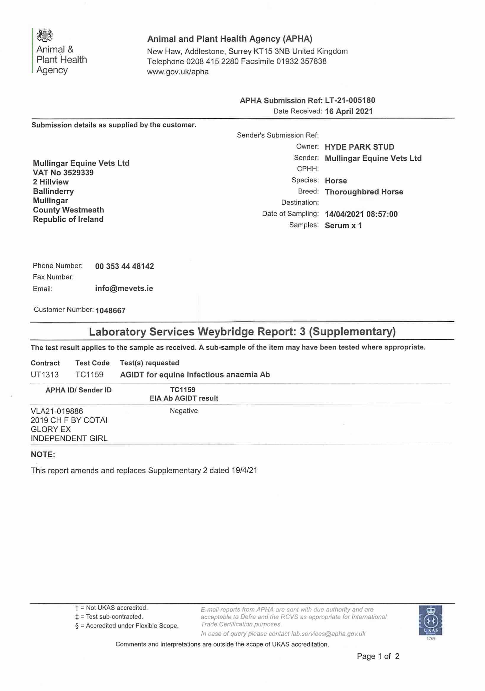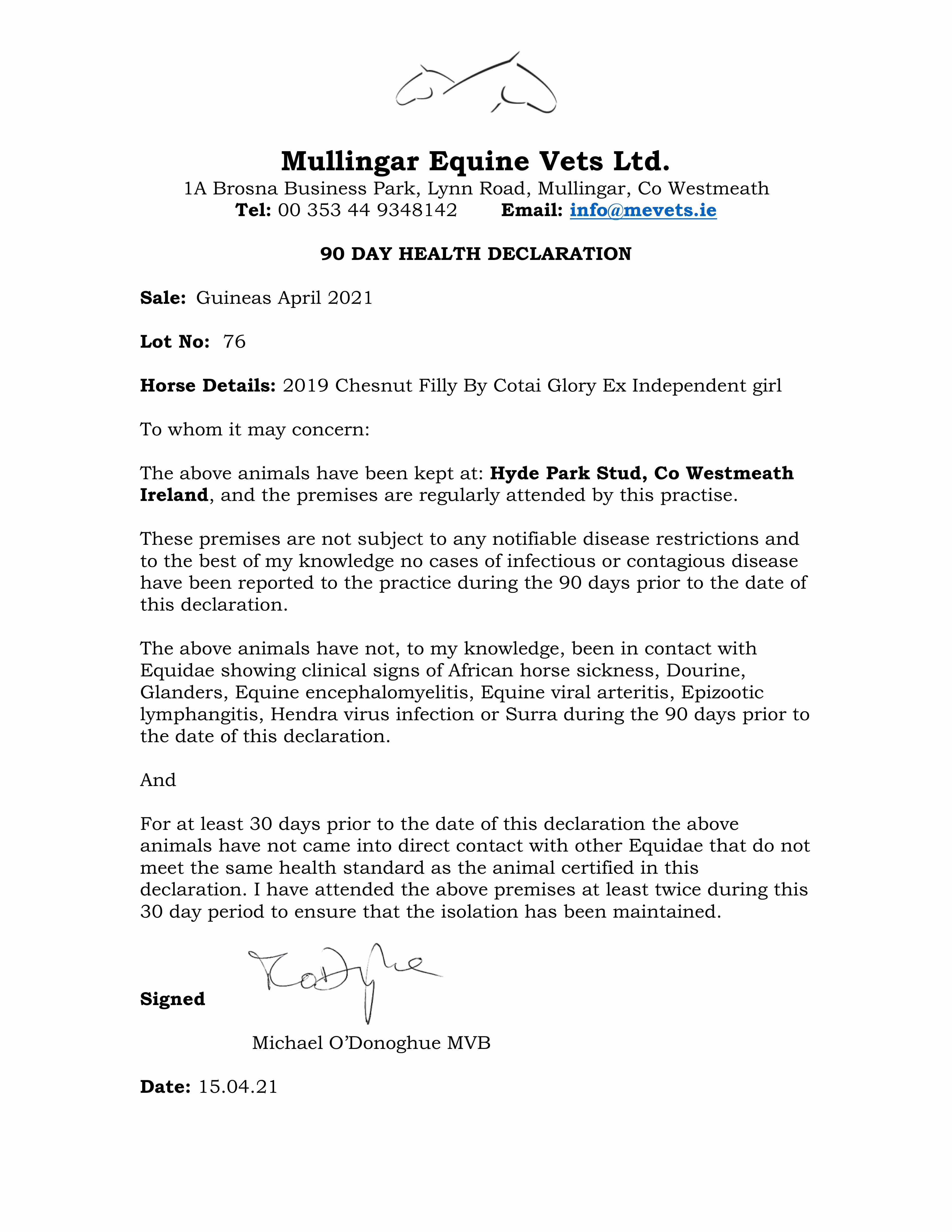 Consignor: Hyde Park Stud, Ireland