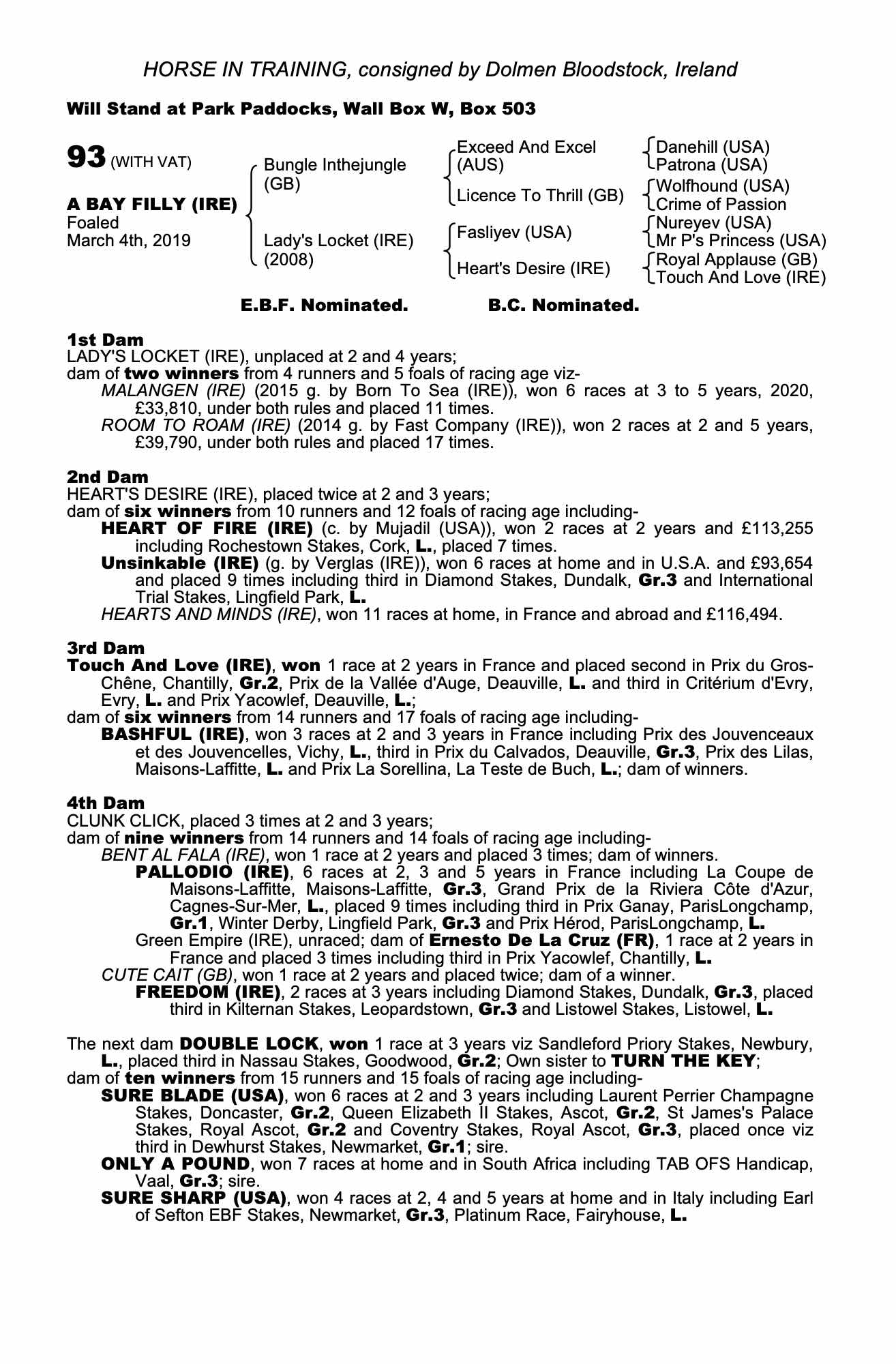 Consignor: Dolmen Bloodstock, Ireland