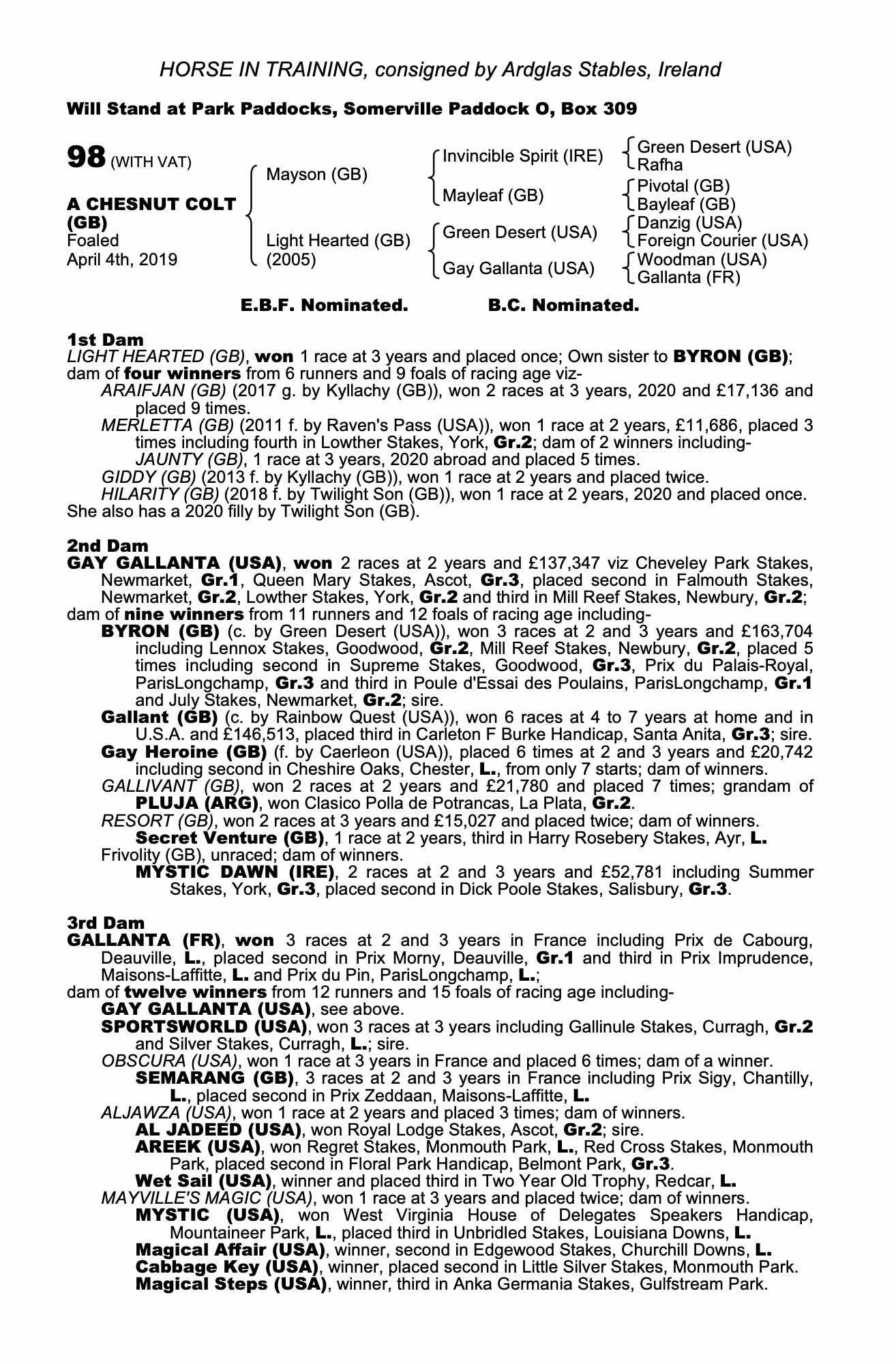Online Sale - 6th June 2024 lot 120 F. by Advertise (GB) 2022, Boyce Bloodstock=>Lot Not Sold 900 gns