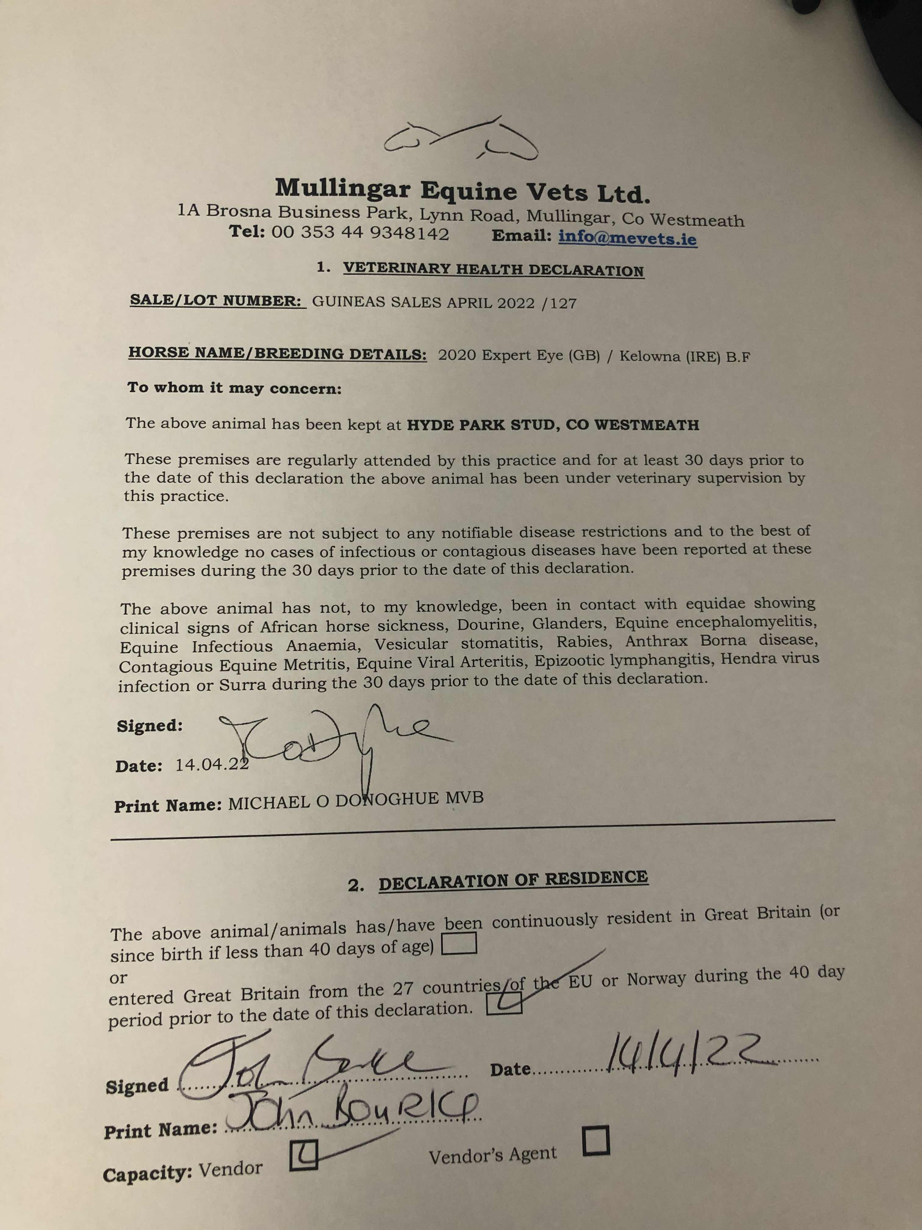 Consignor: Hyde Park Stud, Ireland