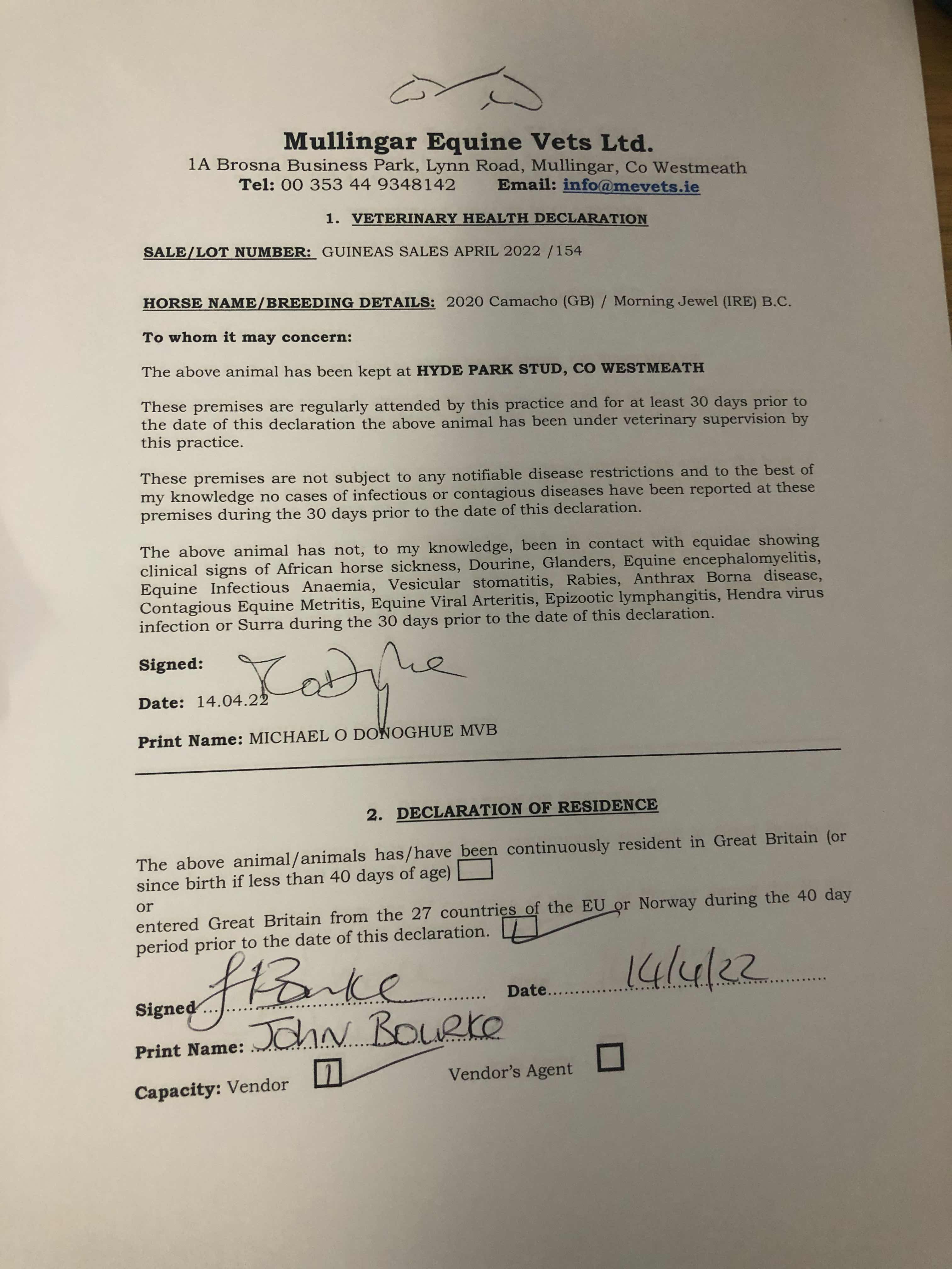 Consignor: Hyde Park Stud, Ireland