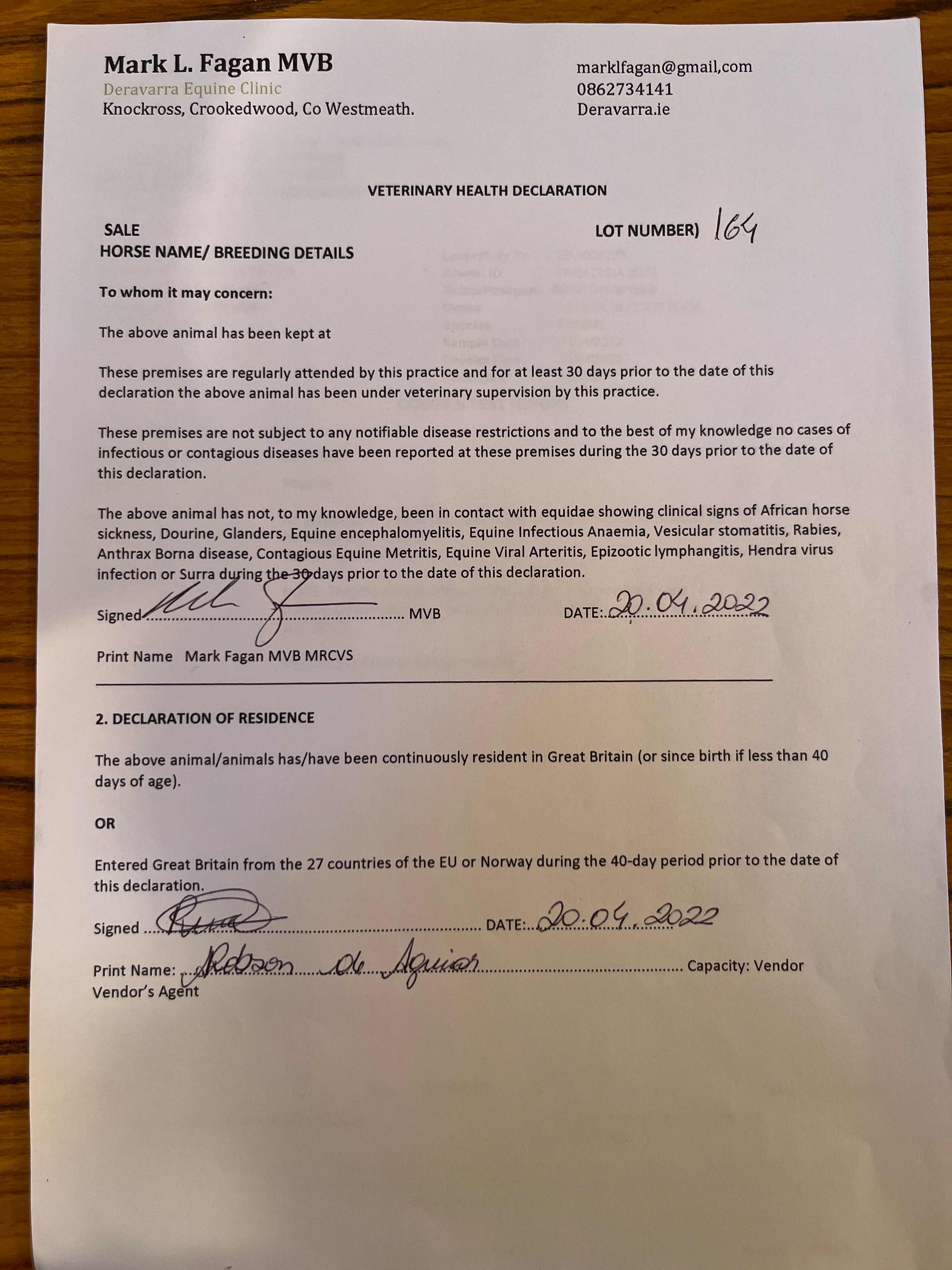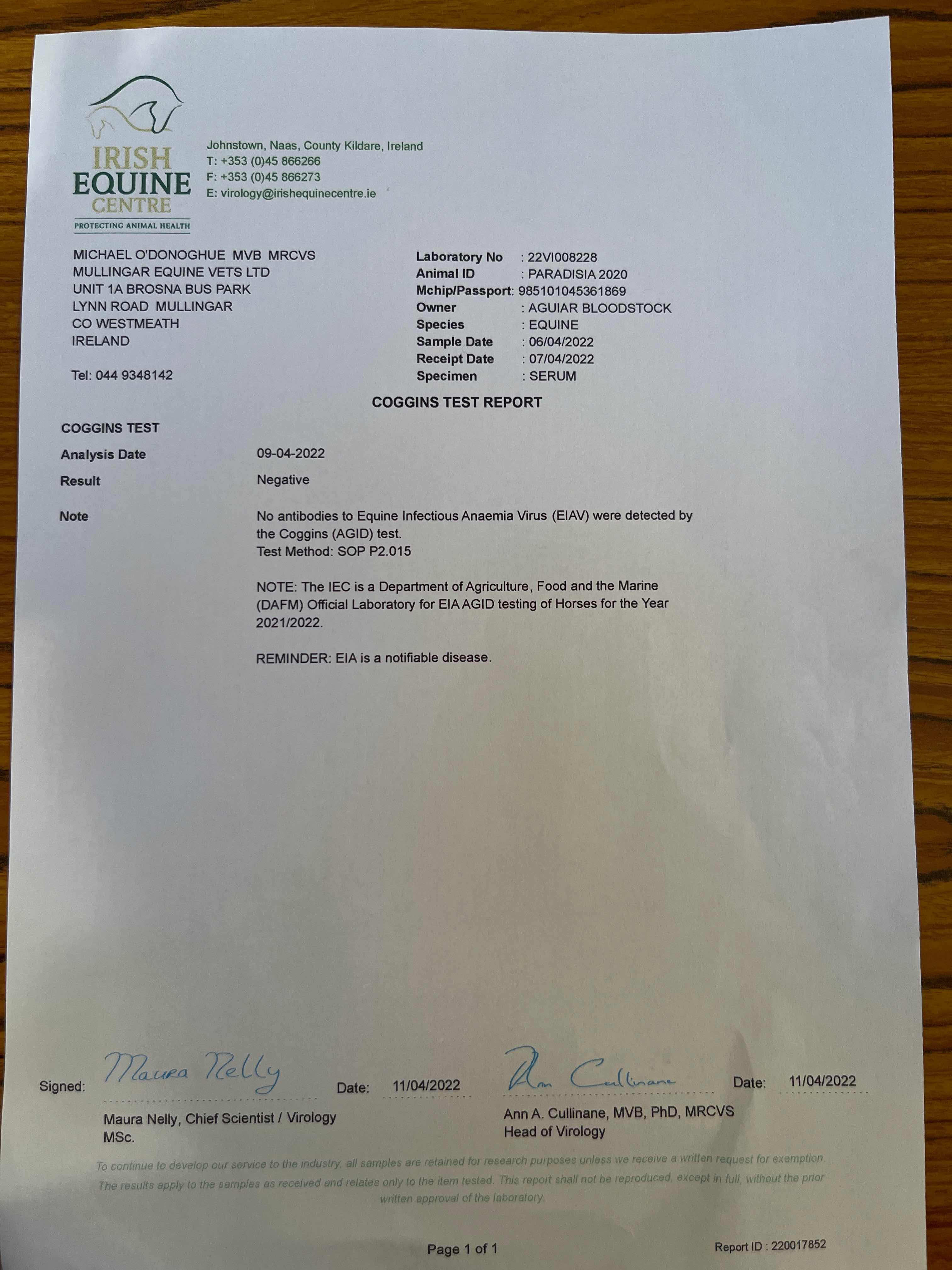 Consignor: Aguiar Bloodstock Ltd., Ireland