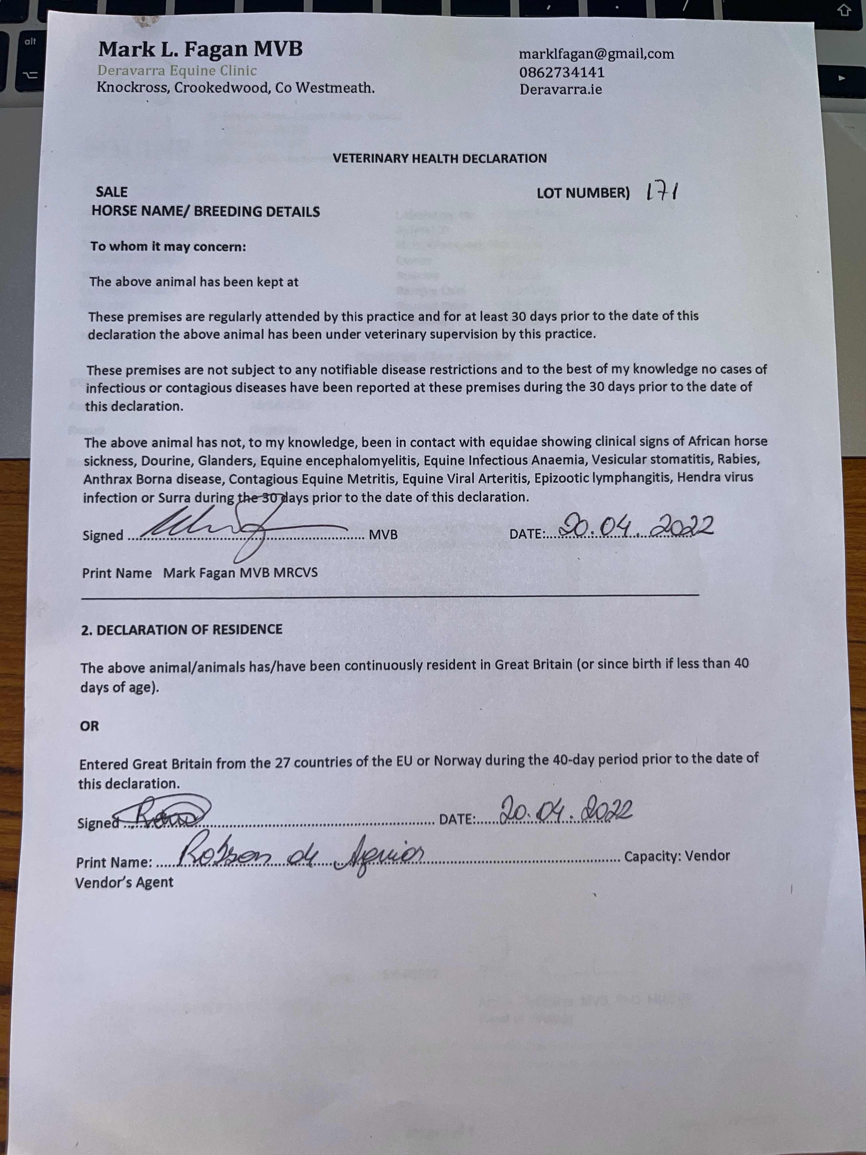 Consignor: Aguiar Bloodstock Ltd., Ireland