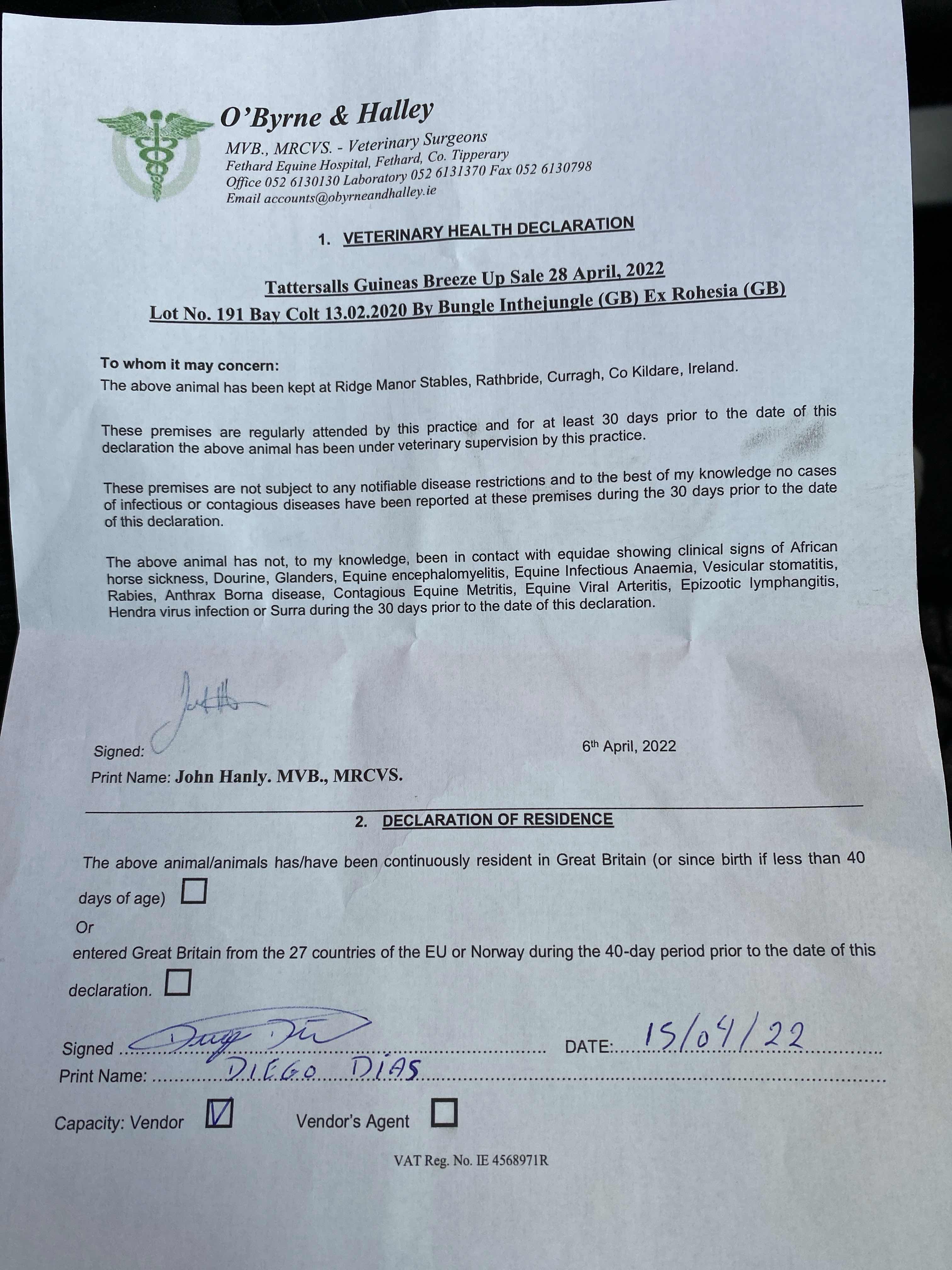 Consignor: Diego Dias Bloodstock