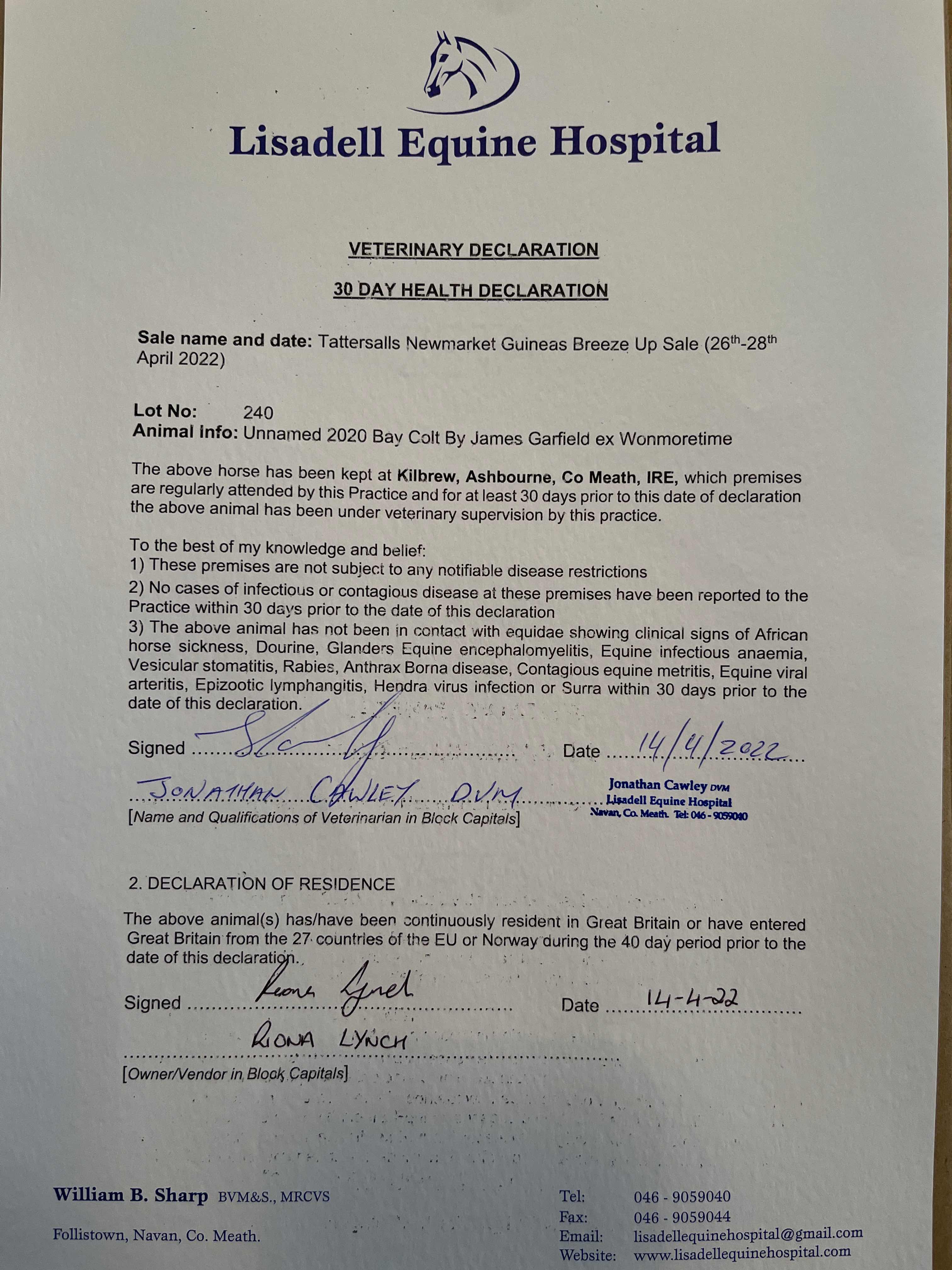 Consignor: Kilbrew Stables, Ireland