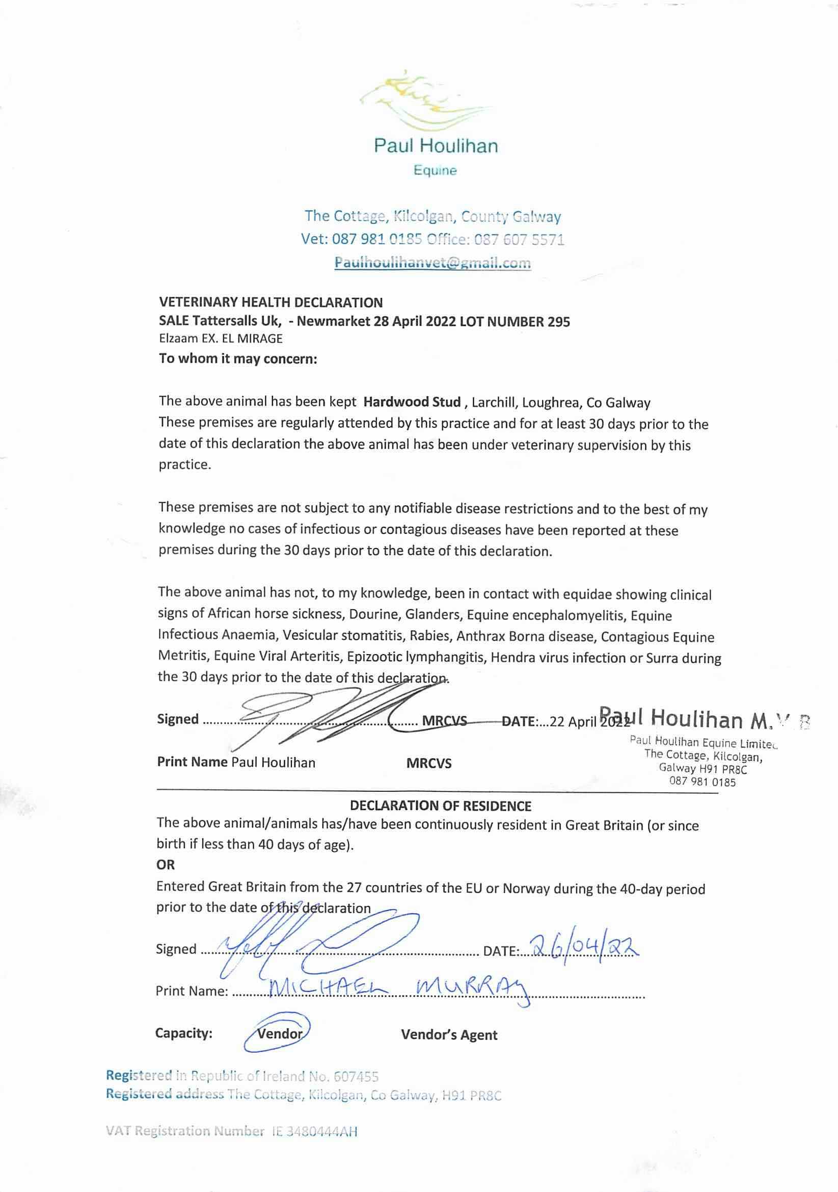 Consignor: Hardwood Stud, Ireland