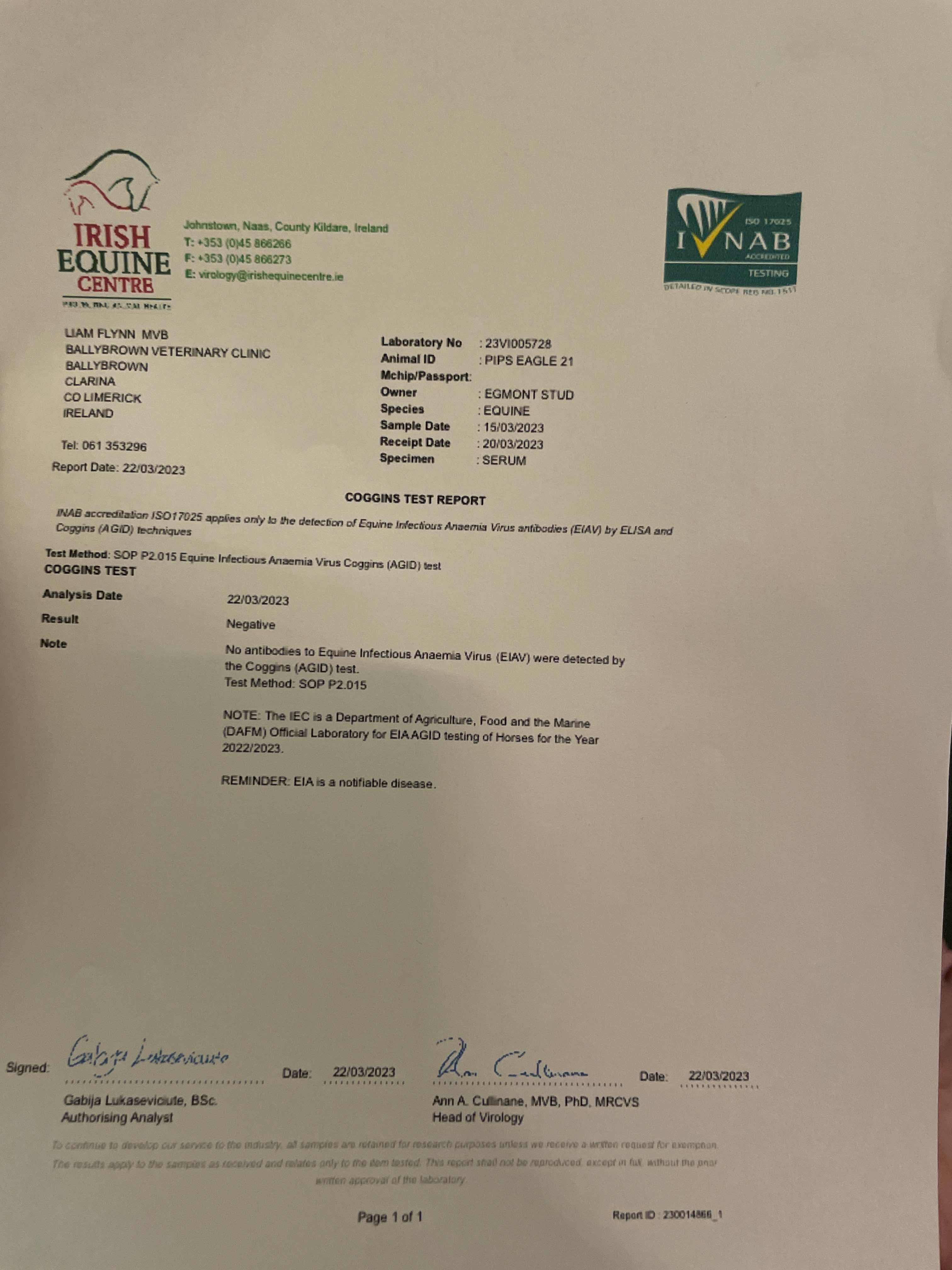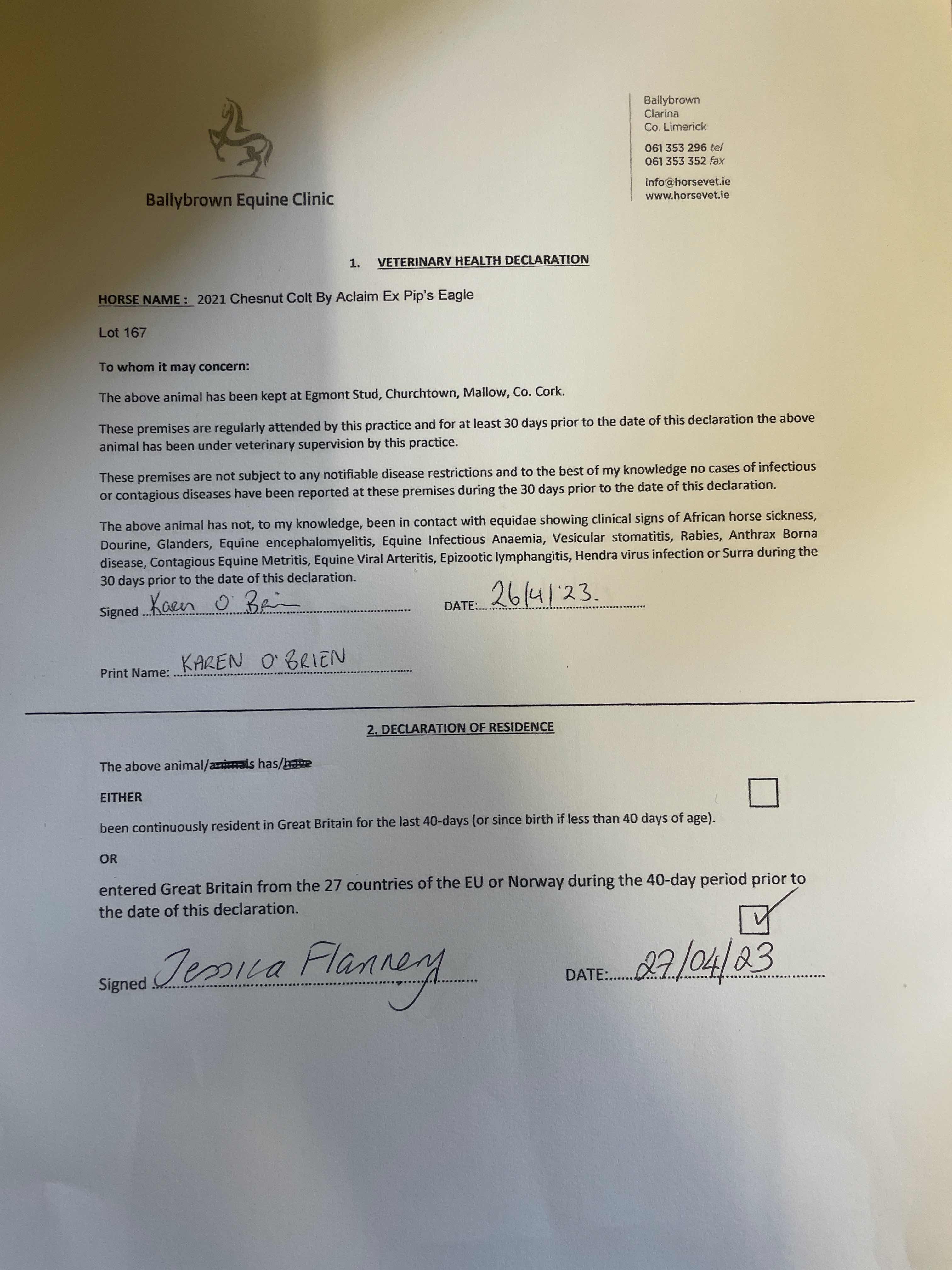 Consignor: Egmont Stud, Ireland