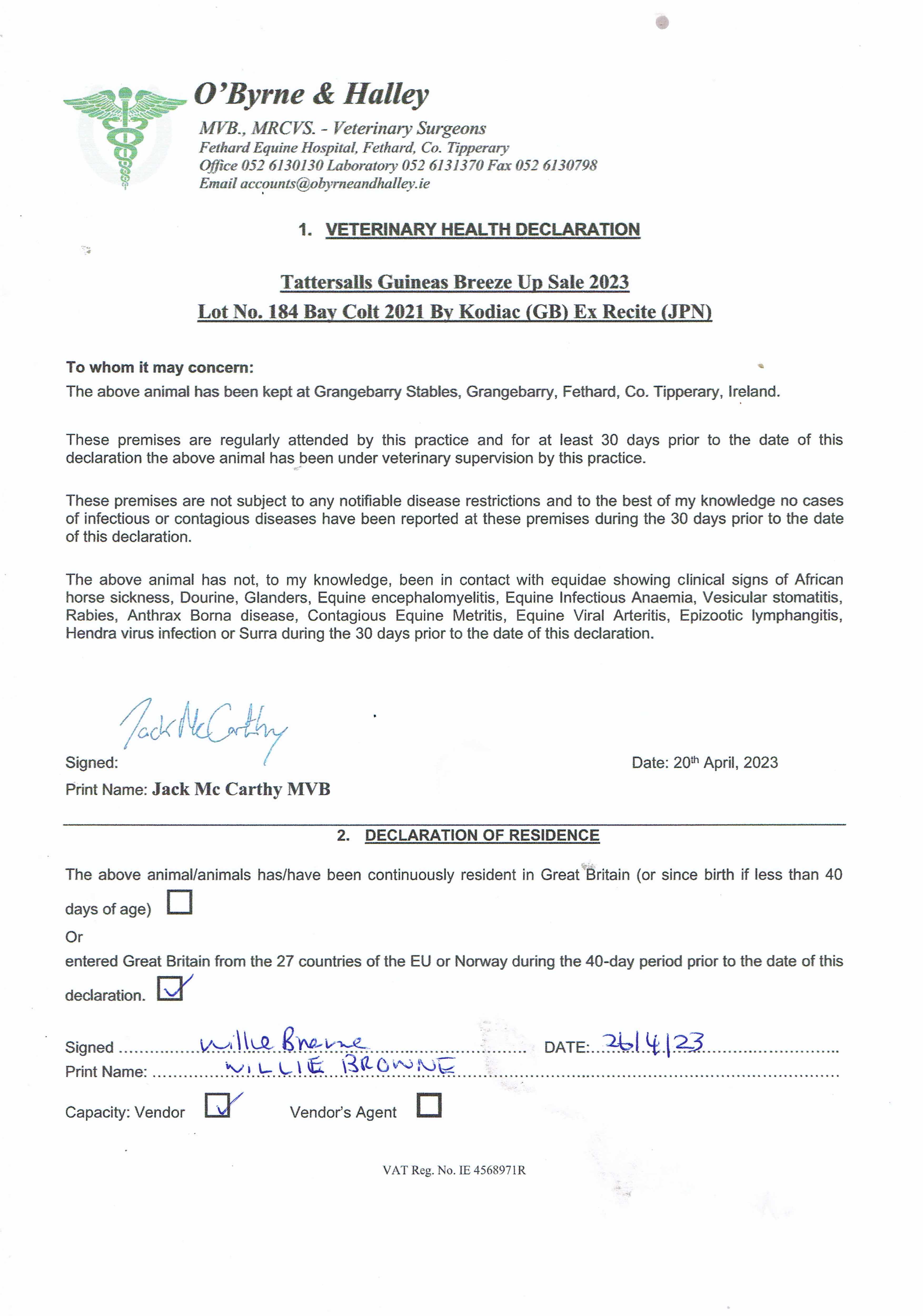 Consignor: Mocklershill, Ireland