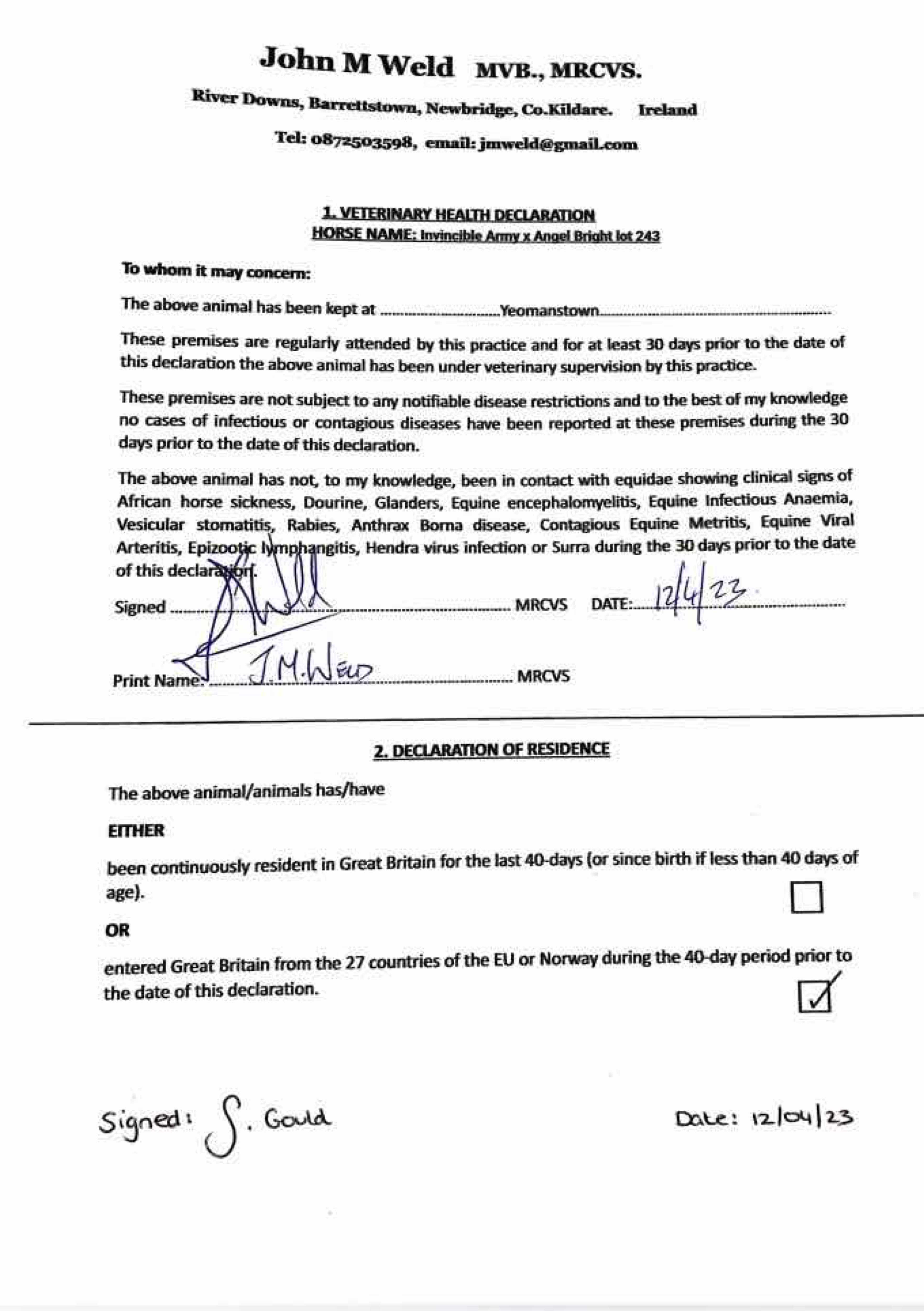 Consignor: Yeomanstown Stud, Ireland