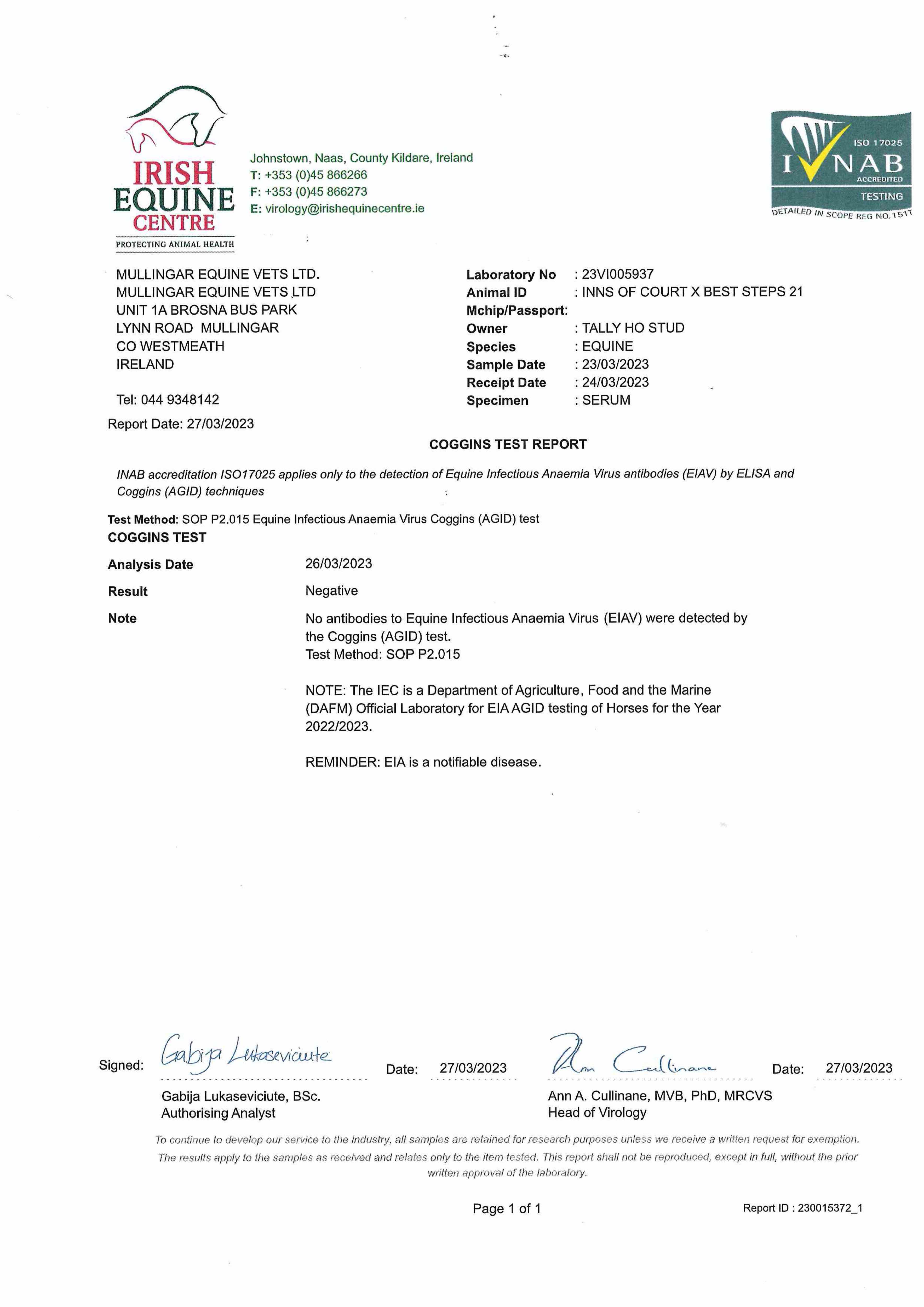 Consignor: Tally-Ho Stud, Ireland