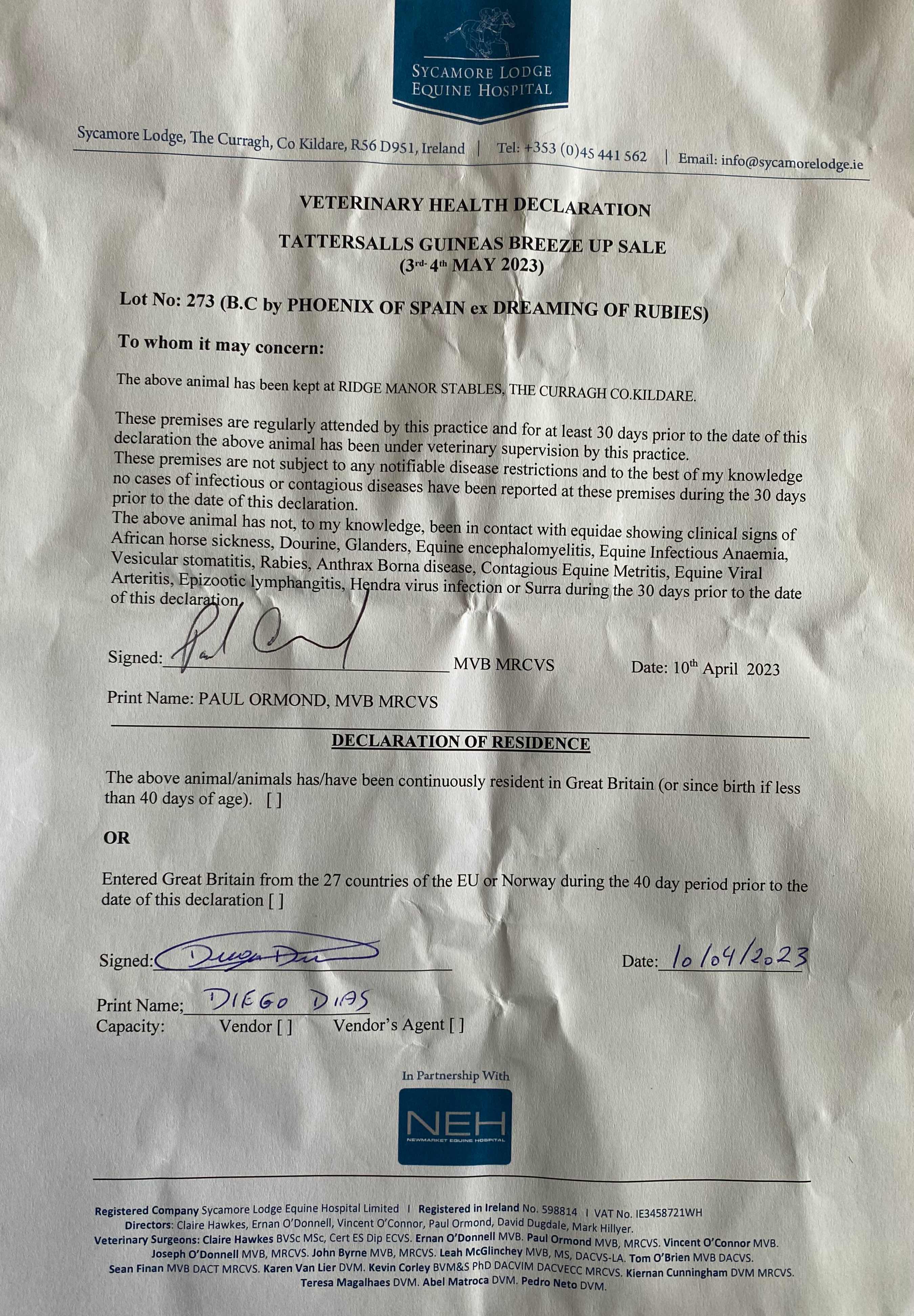 Consignor: Diego Dias Bloodstock
