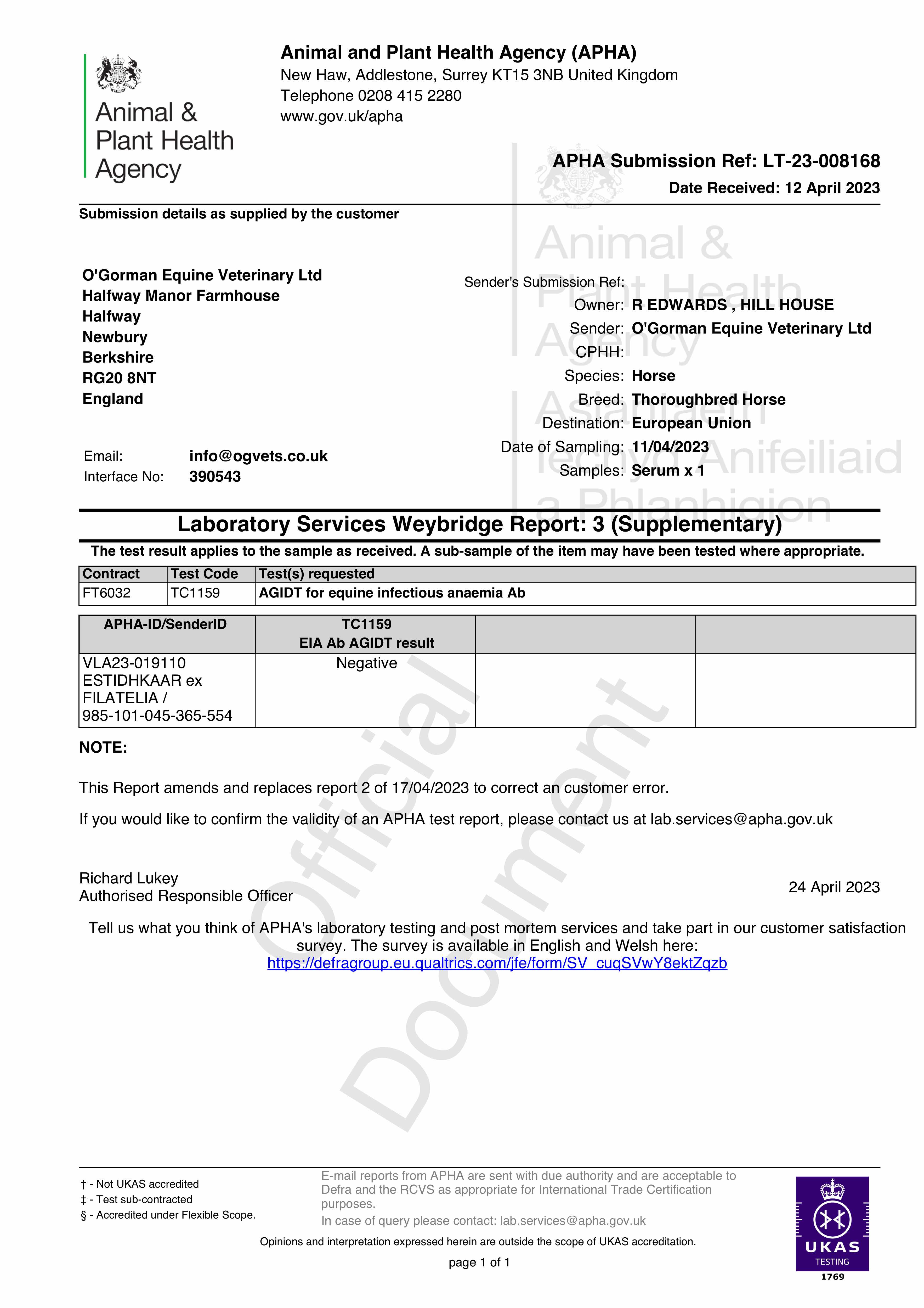 Consignor: Edwards Pre-Training