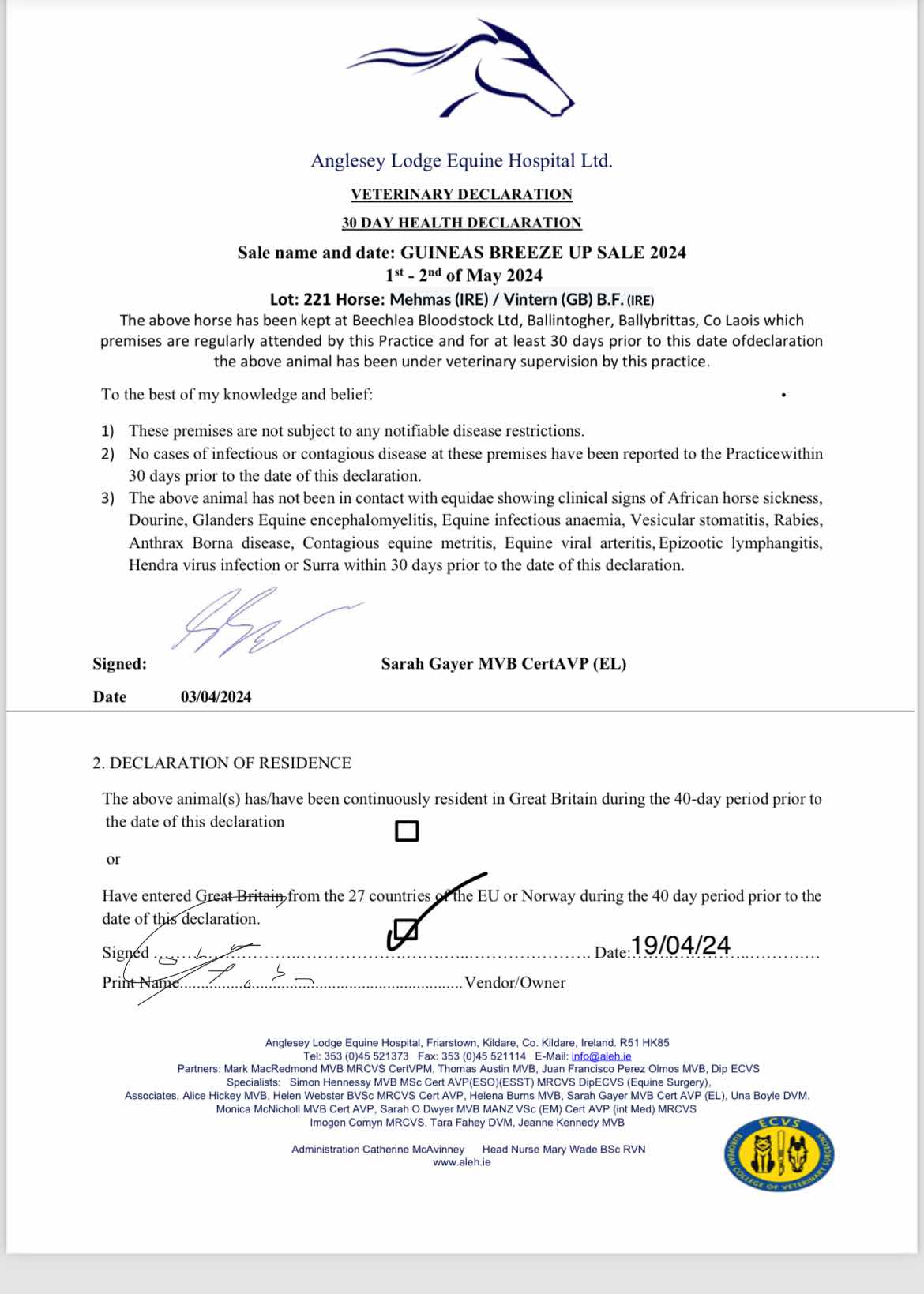 Consignor: Beechlea Bloodstock Ltd., Ireland
